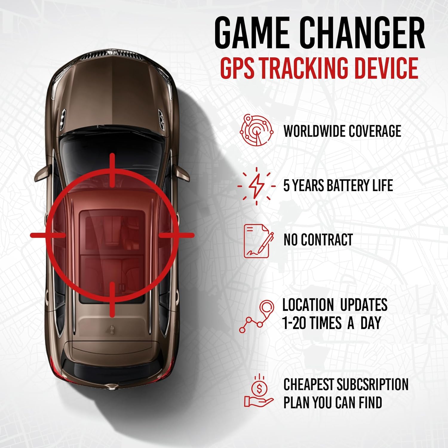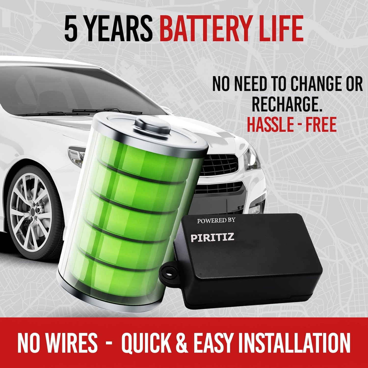 SMALL SIZE ONLY 1.75″x 2.75″x 1″ NO WIRES – QUICK AND EASY INSTALLATION WATERPROOF THE LOWEST MONTHLY SUBSCRIPTION YOU CAN FIND NO SIM CARD NEEDED