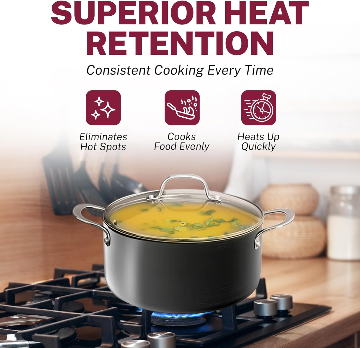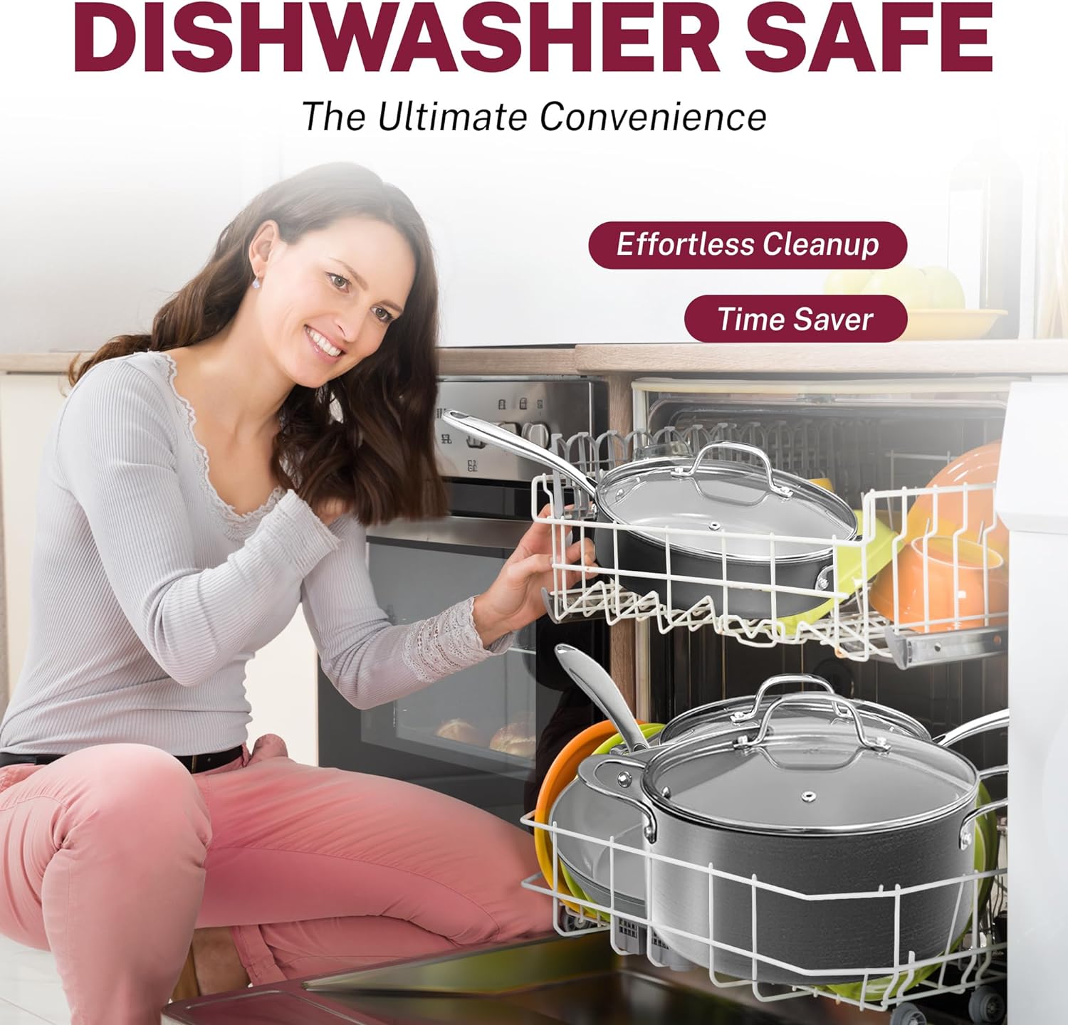 EFFORTLESS CLEANUP, DISHWASHER SAFE– Spend less time with cleanup! After all the cooking and prepping is done, place cookware in the dishwasher for quick and easy cleanup.