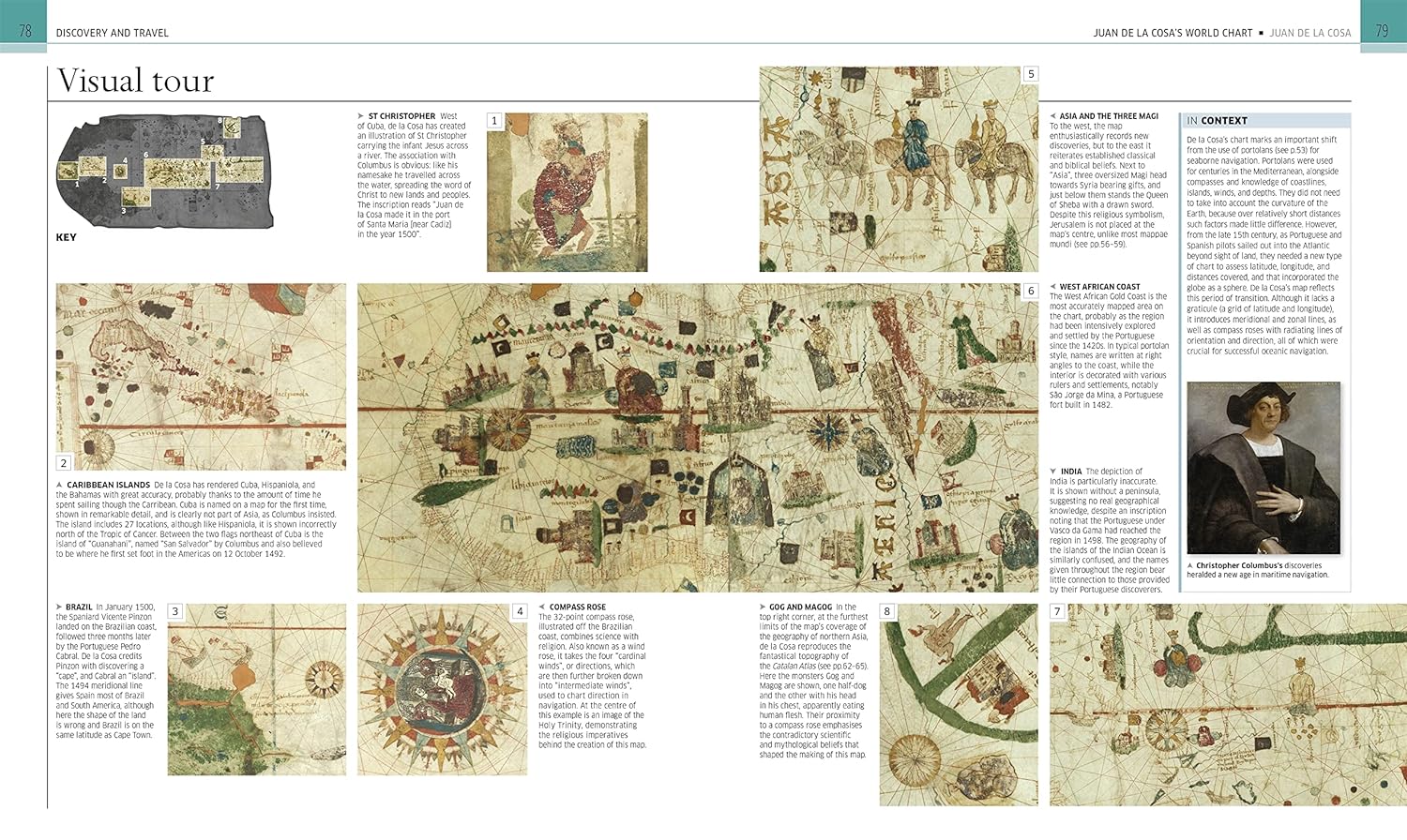 • Analyses each map visually, with the help of pull-outs and graphic close-up details