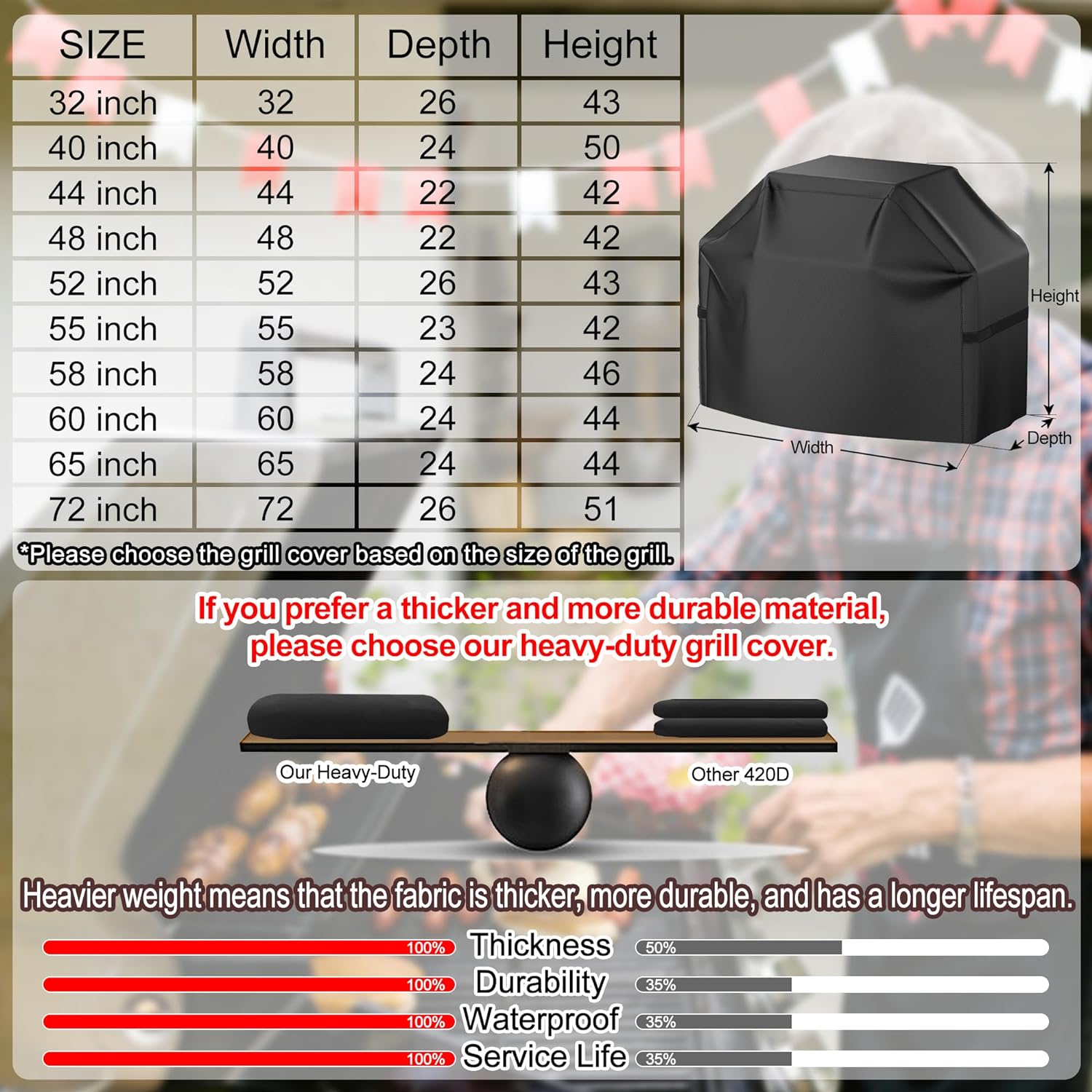 [Use with Confidence] We provide multiple sizes of covers for grills of different sizes. If you have any problems, please contact us at any time by Amazon Order, and we will speed up the process to resolve the issue and ensure your satisfaction.