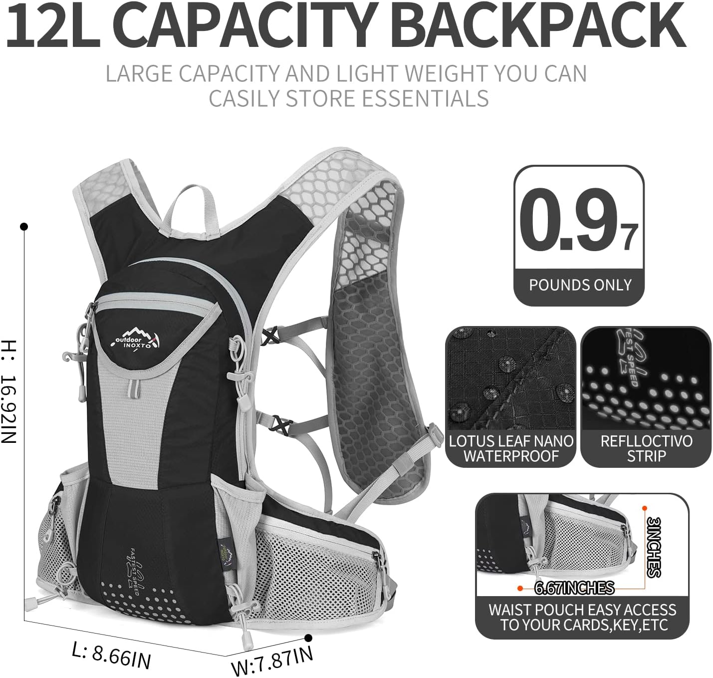 🚴【Highly Durable & Lightweight】This awesome IX INOXTO running hydration vest backpack made of scratch-resistant and wear-resistant material with a lotus leaf-like waterproof effect. 16.92”x8.66”x7.87” in size, Ergonomically fits, The weight of 0.97 lbs and capacity of 18L are the perfect match for short trips, satisfy your thirst for adventure.