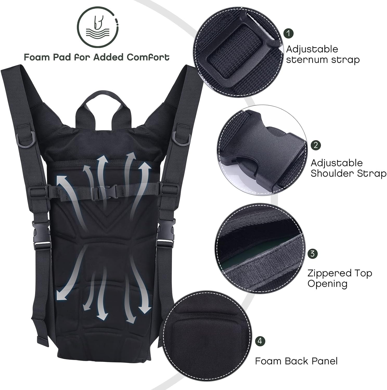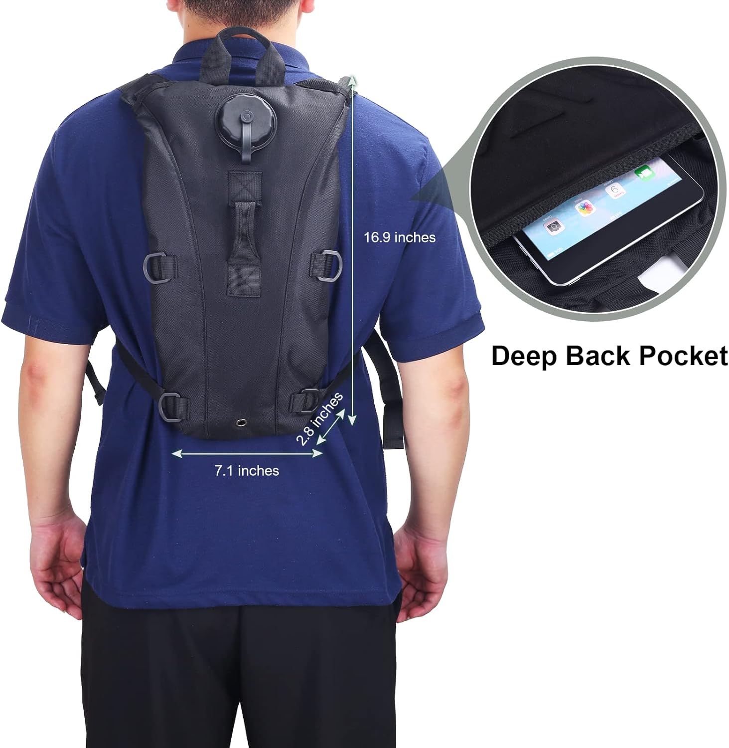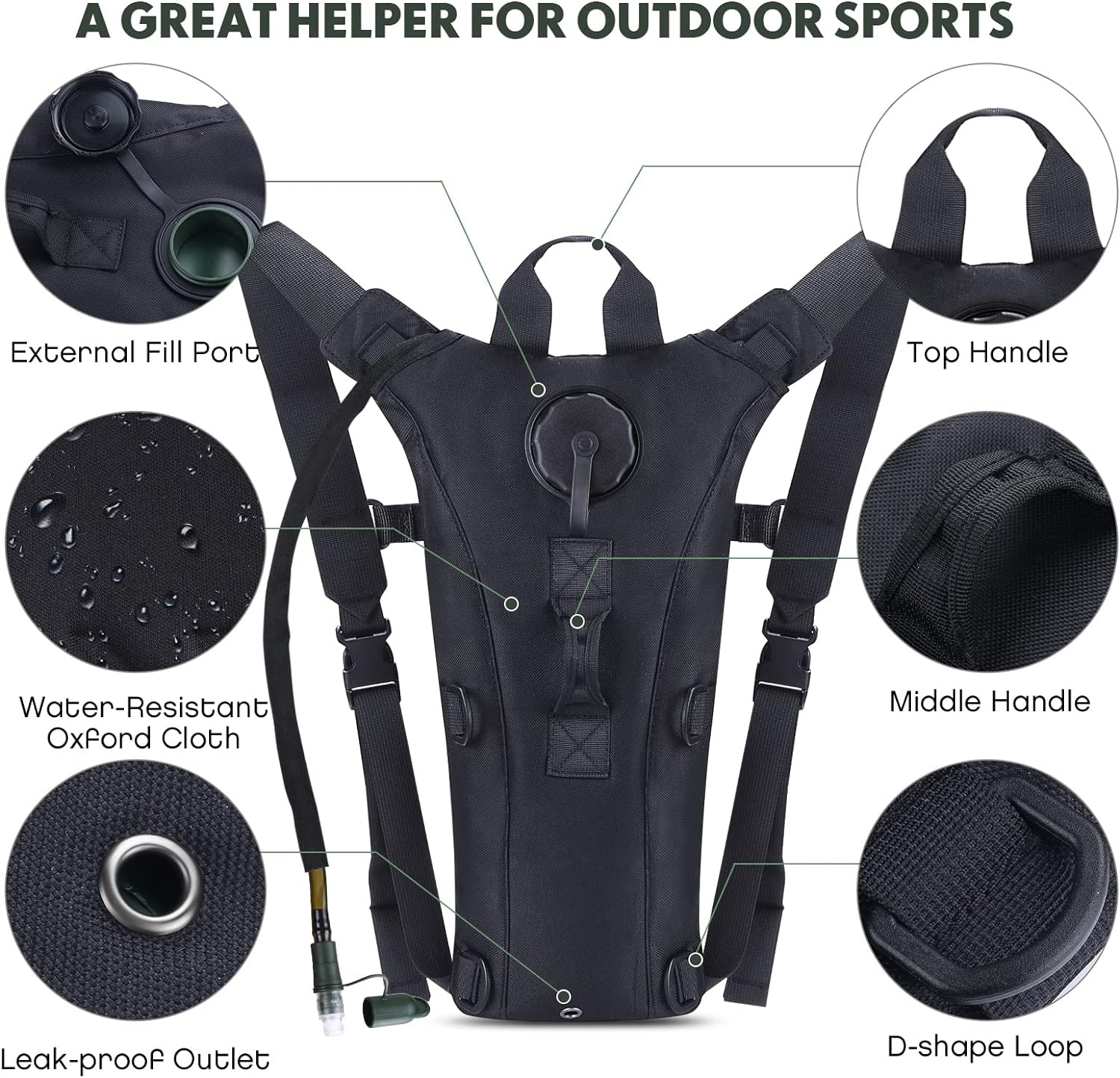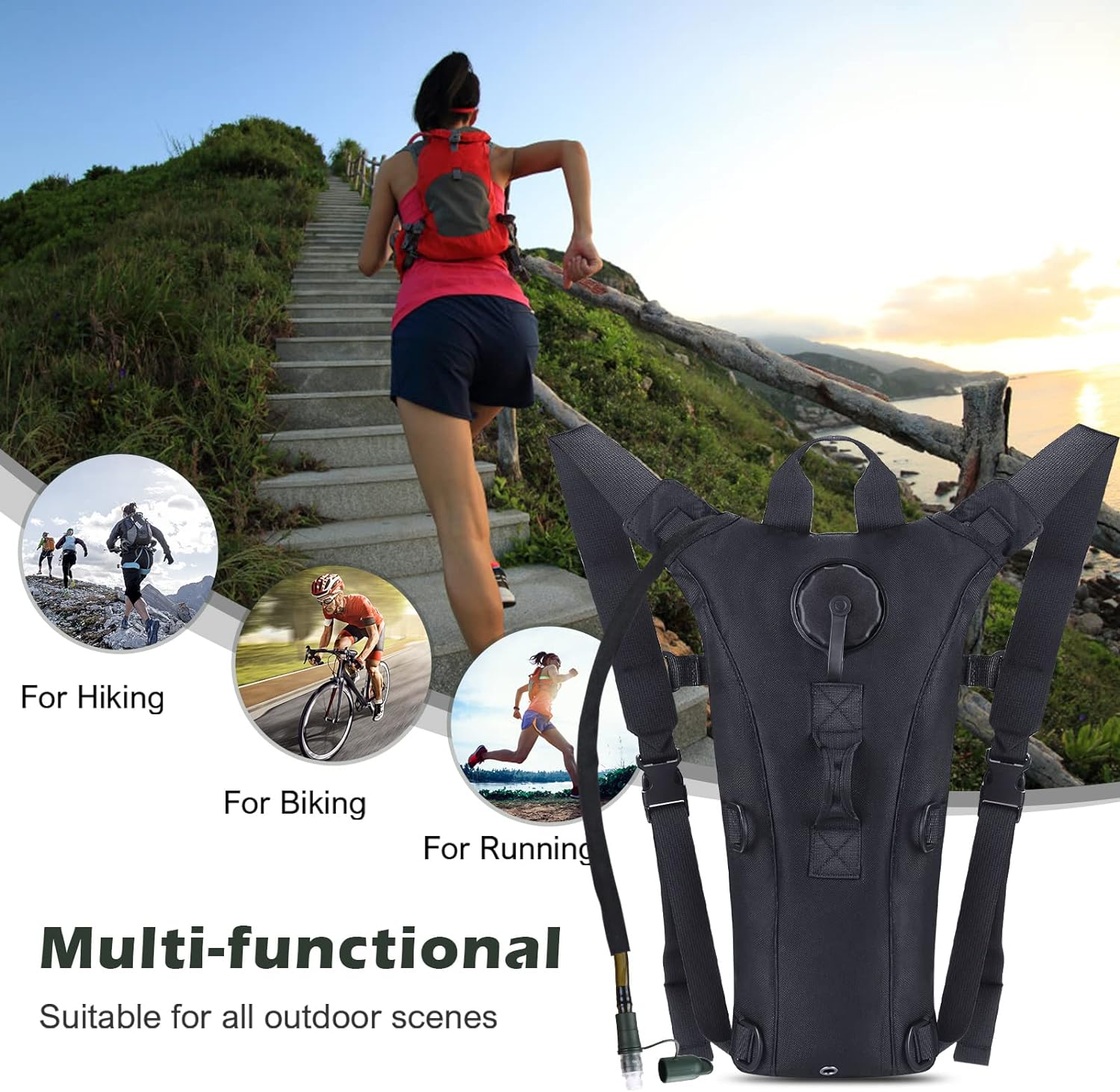 3L Hydration Bladder: BPA-Free, taste-free, and odorless. Durable, kink-free sip tube and push-lock cushioned bite valve, gently biting the valve to open up the flow of water; Large 2 opening for ice cube and easy cleaning