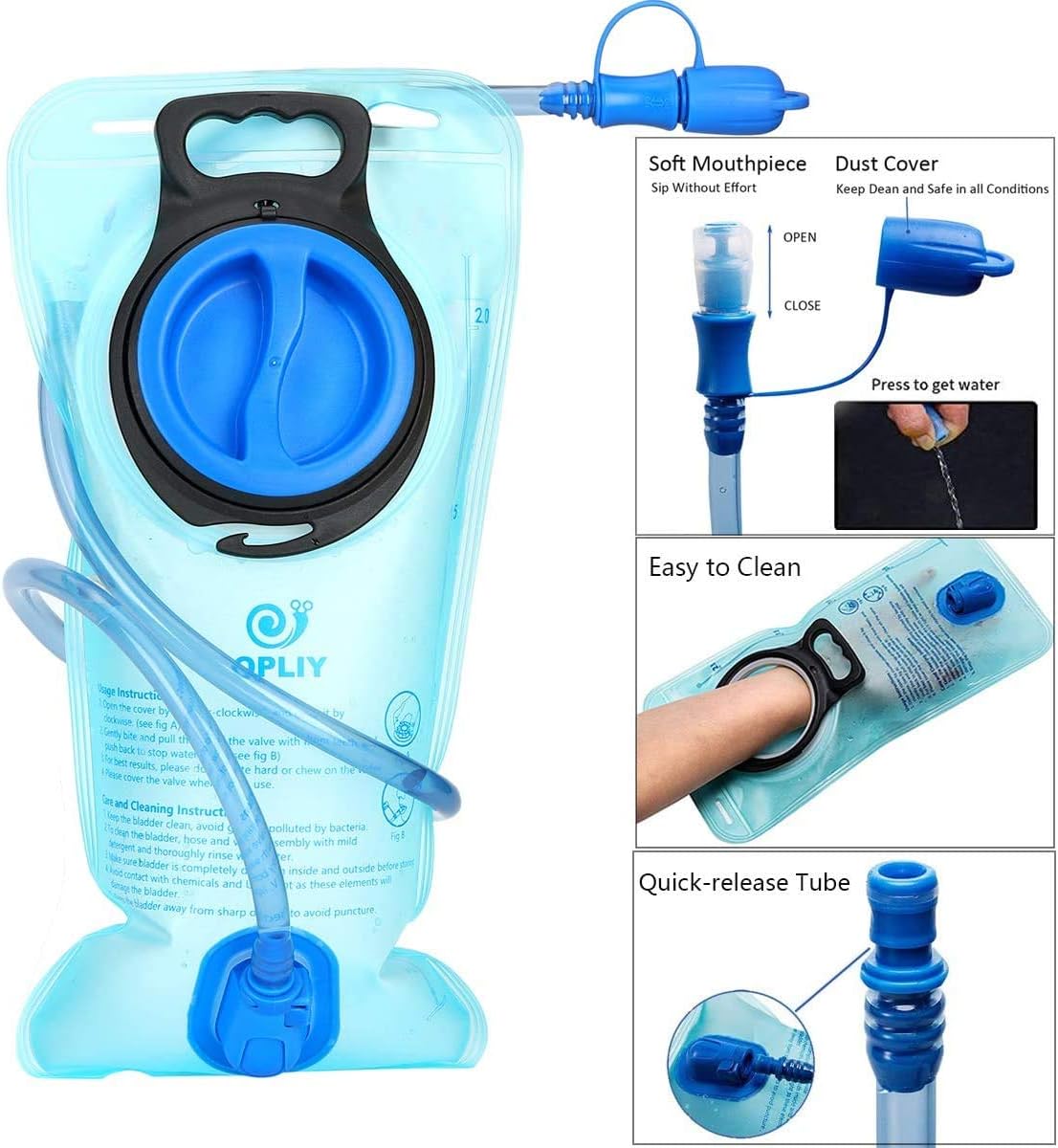 PROFESSIONAL 2L HYDRATION BLADDER: 2 liters (70 oz) BPA-free Hydration Bladder-The perfect size offer a nice balance of reasonable weight and bulk while providing a sufficient quantity of water.