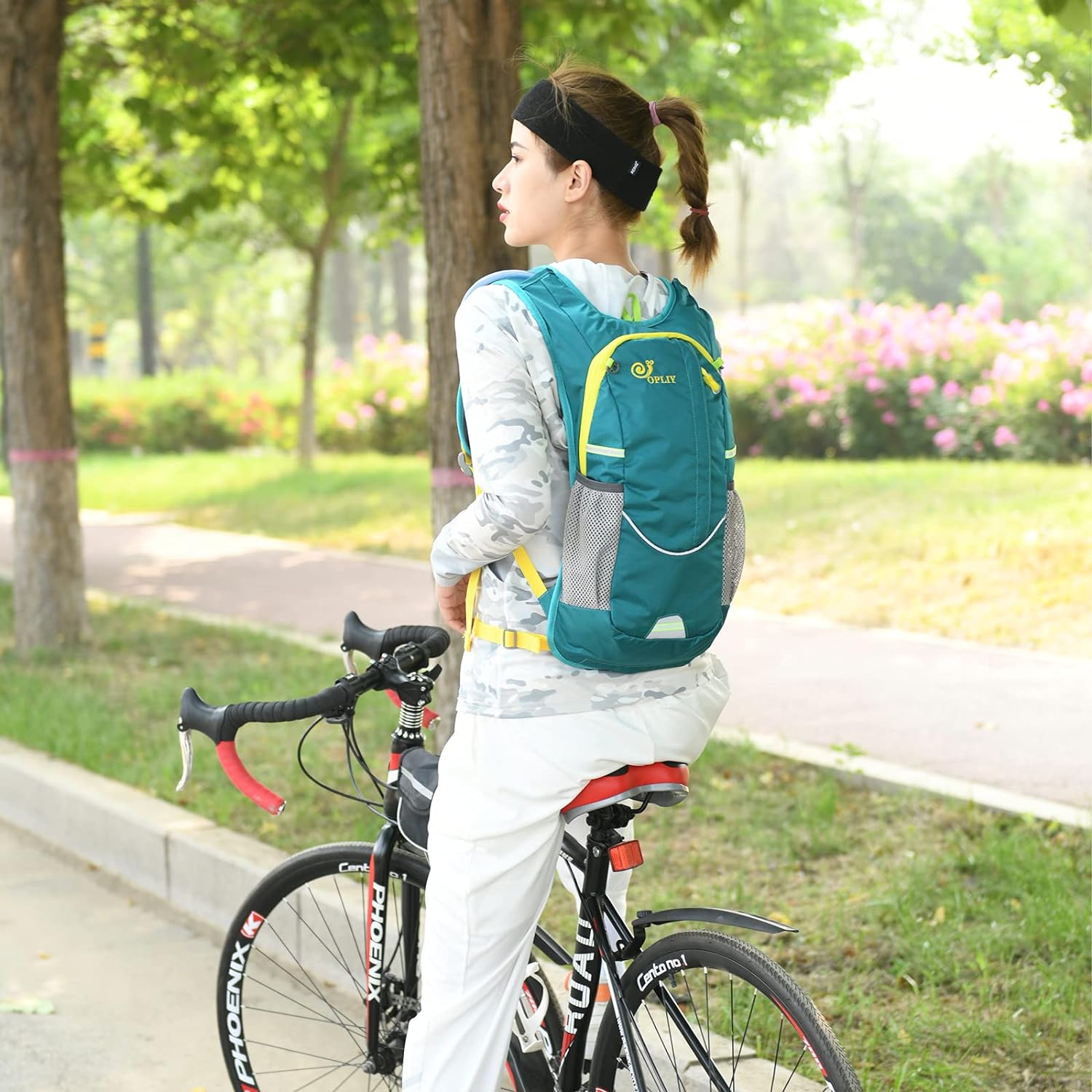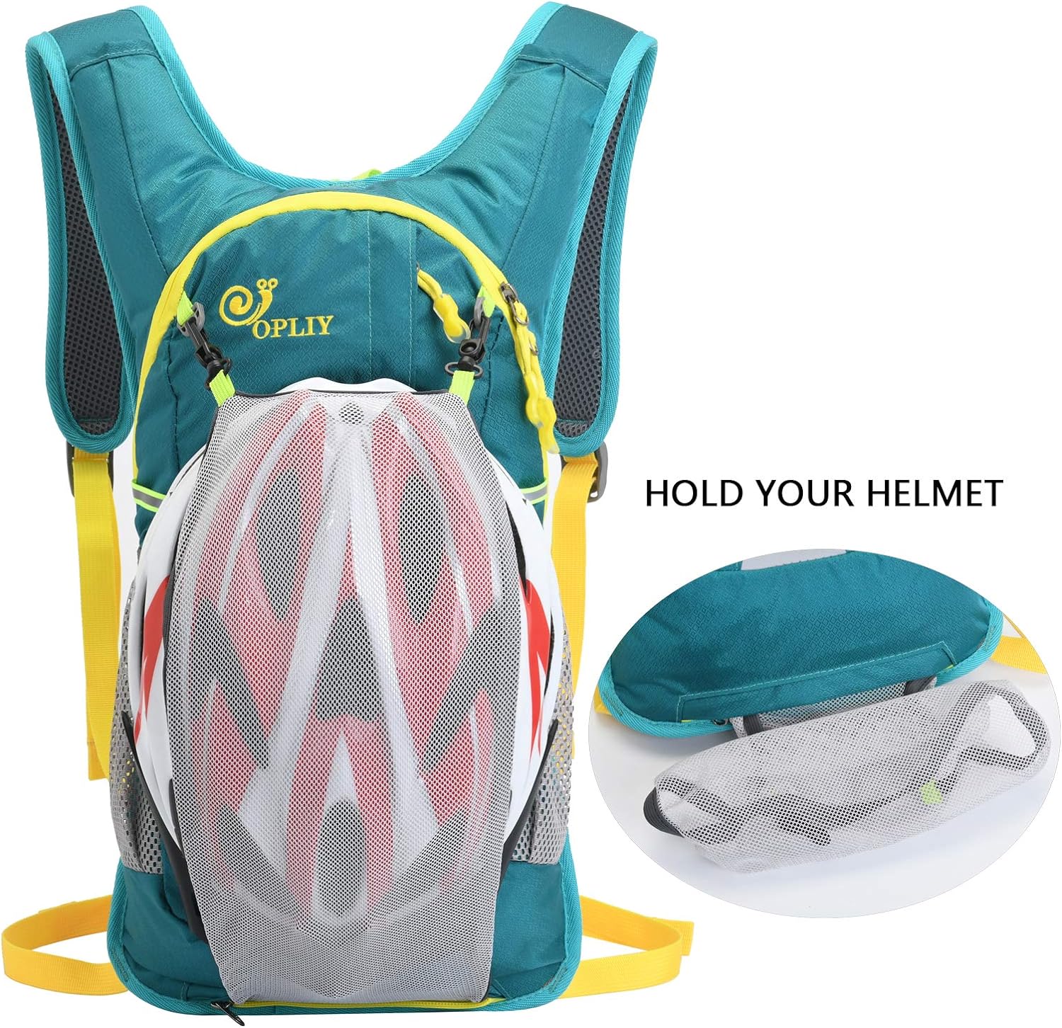 COMFORTABLE & FUNCTIONAL backpack: Hydration backpack has a bike helmet organizer pocket, built-in safety whistle, extra storage pockets, and reflective accents for visibility in low-light environments. a Breathable mesh back panel for a cool & comfortable ride.