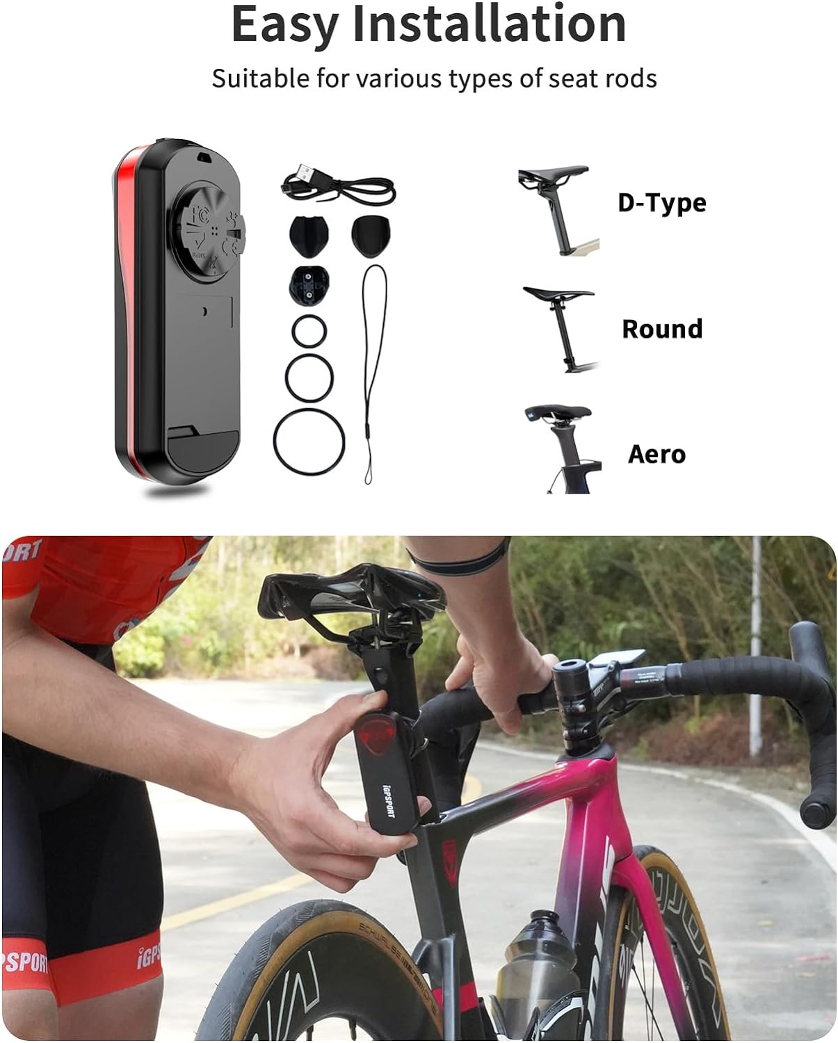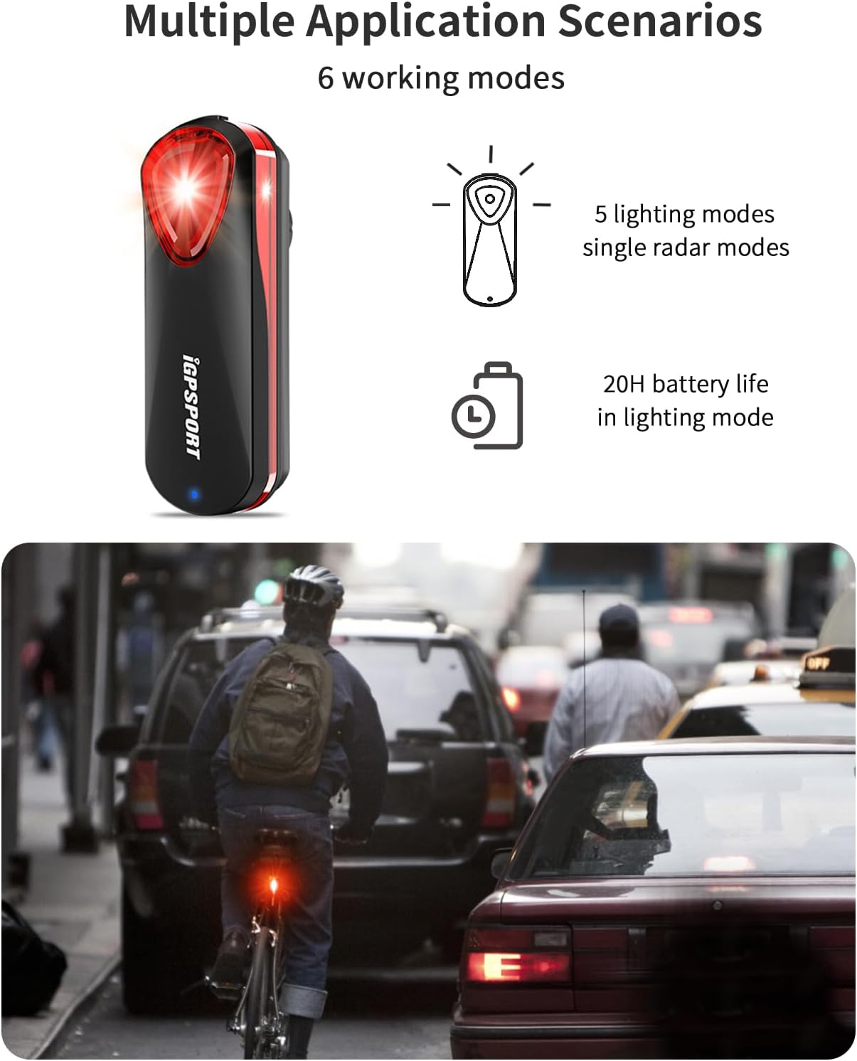 iGPSPORT SR30 Radar Bike Rear Light, 20H Battery Life, 150M Monitoring Distance, IPX7 Waterproof, Rechargeable Bicycle Cyle Back Tail Lights