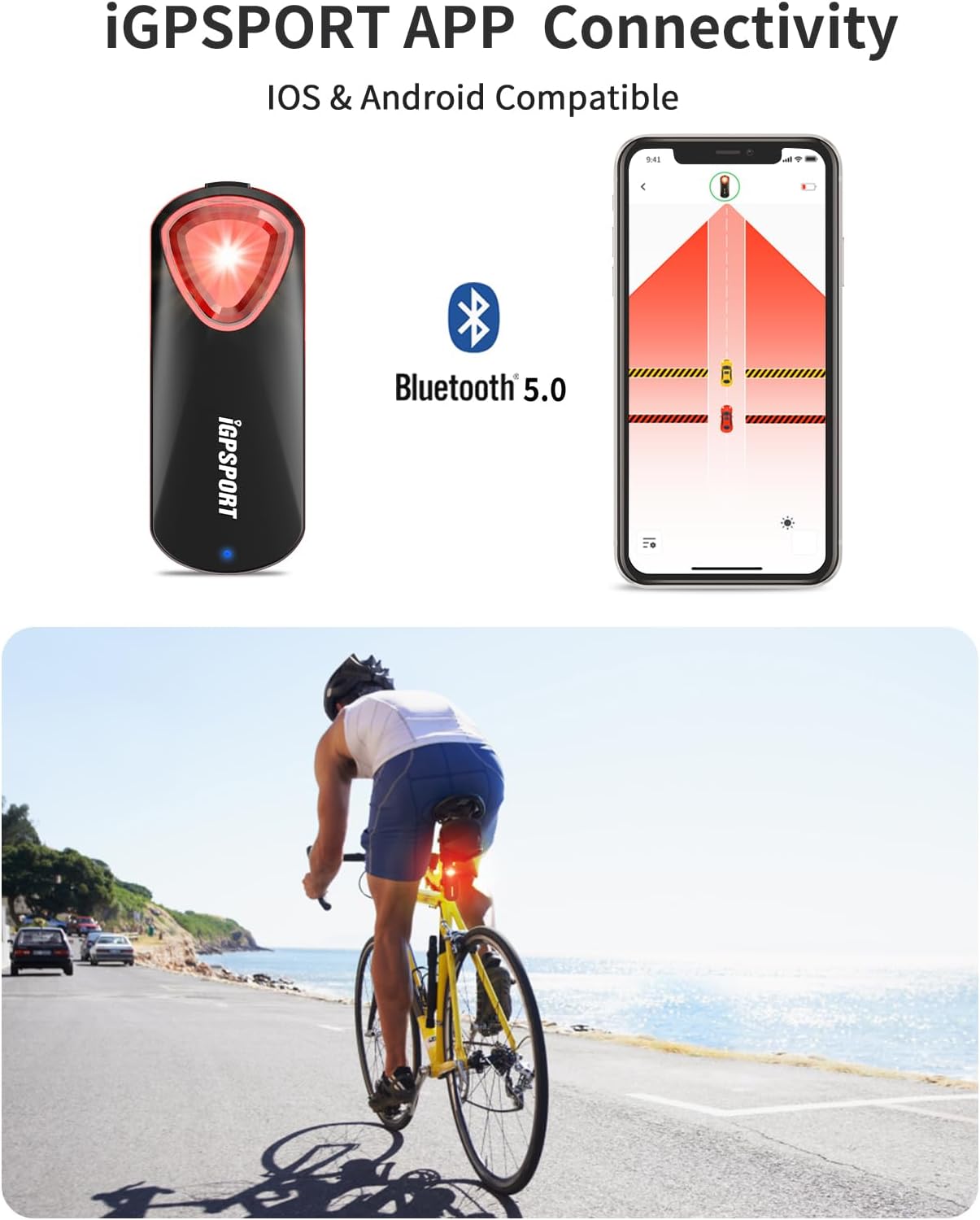 【Intelligent reminder】Built-in high-precision sensor, automatically highlight when brakes, when vehicle approaches from behind, it provides visual and audible alarms to the rider through the display terminal; and high-frequency flashes to remind vehicles approaching within 220° and 1 mile behind;