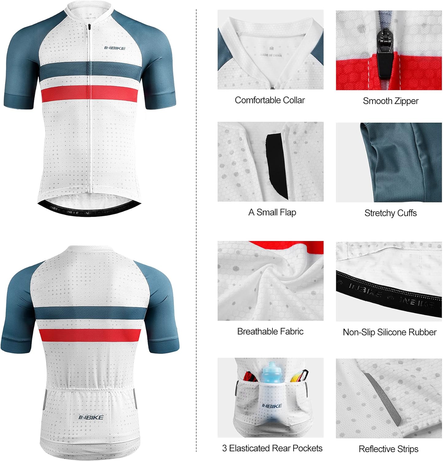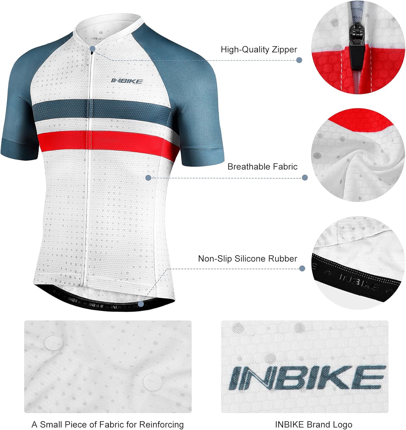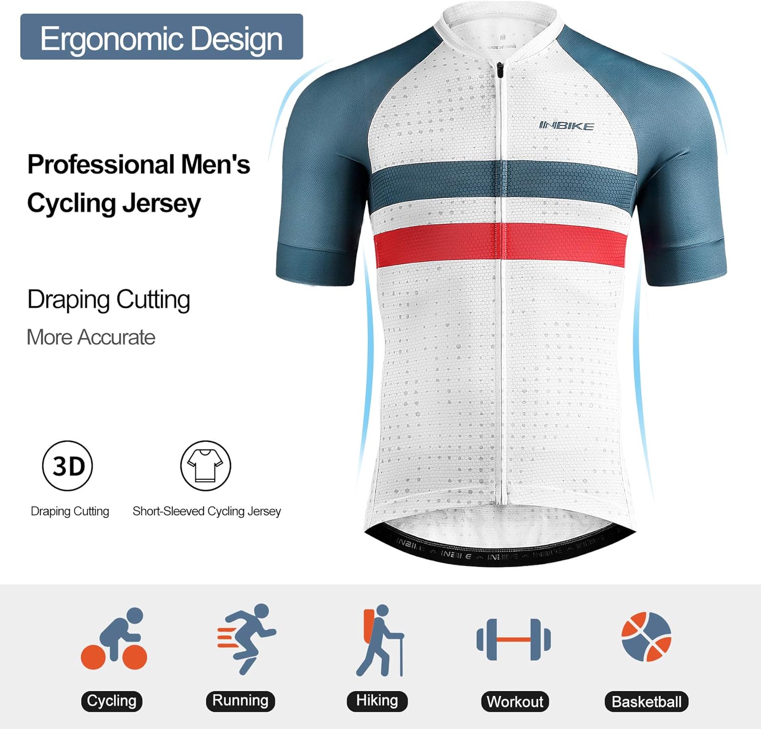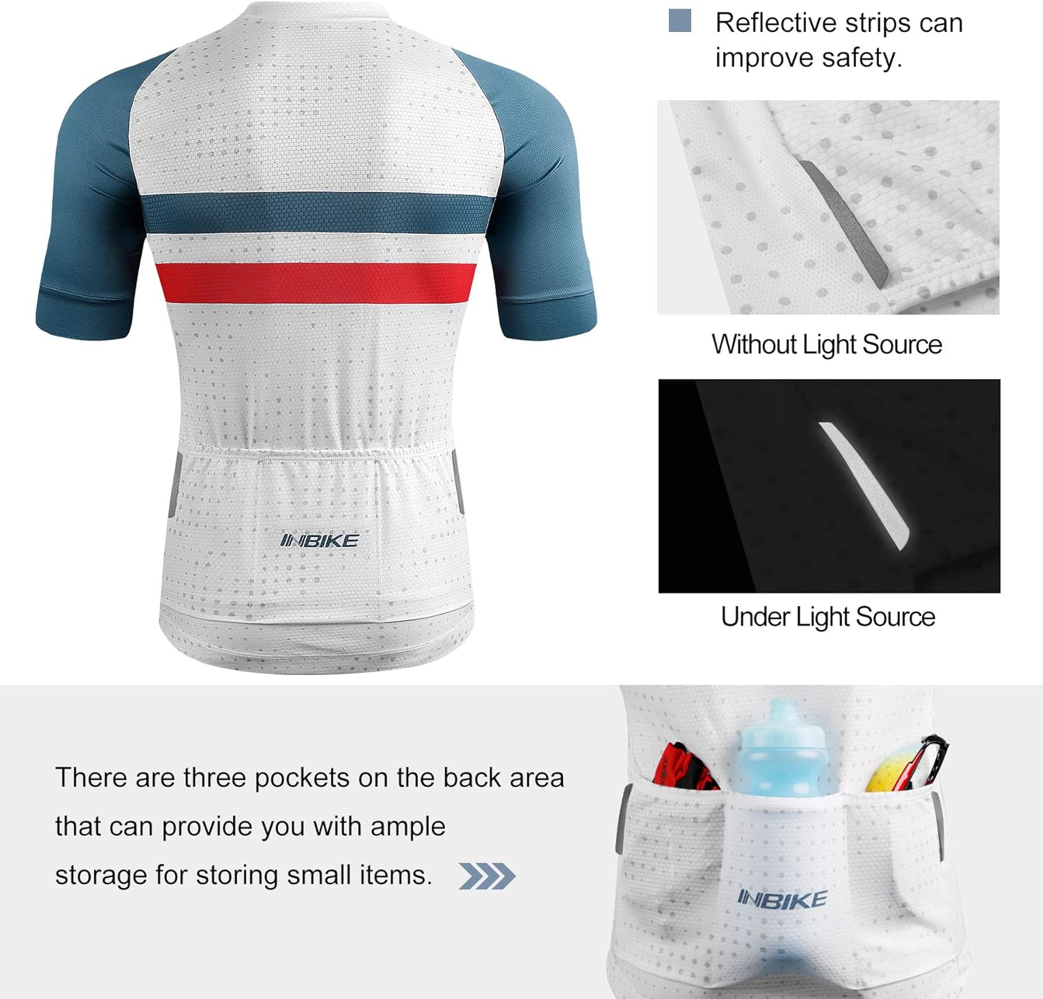 INBIKE Mens Cycling Jersey 3 Rear Pockets Moisture Wicking Short Sleeve Quick Dry Reflective Biking Shirts