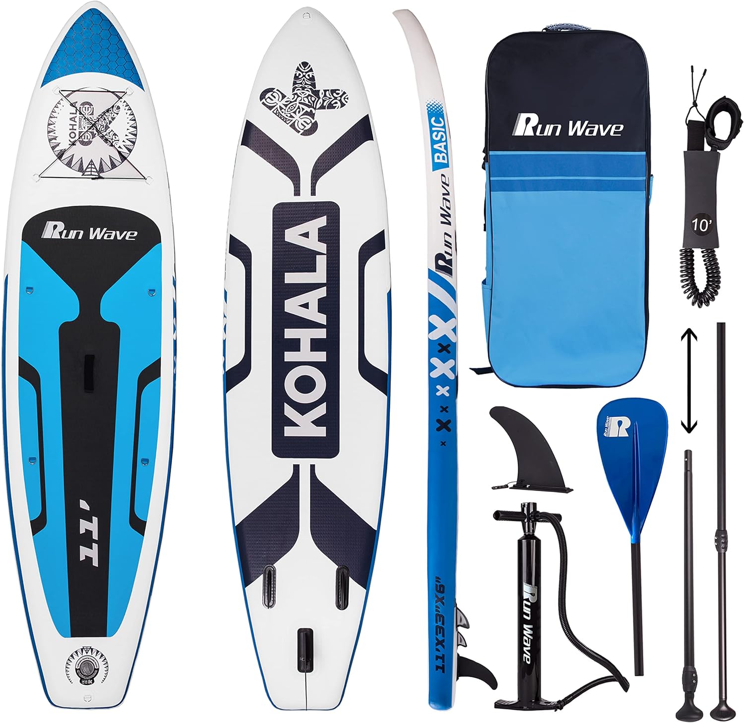 №4 Wide SUP Design – Run wave stand up paddling board is 11′ long and provides 33” of deck width for improving stability and balance while standing.