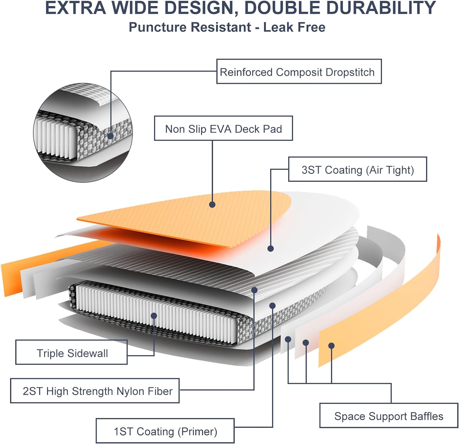 Inflatable Stand up Paddle Board, Extra Wide Paddleboard, Kayak Seat, Adjustable Aluminum Paddle with SUP Accessories, Waterproof Bag, Leash, Hand Pump, Repair Kit, for Adults Youth