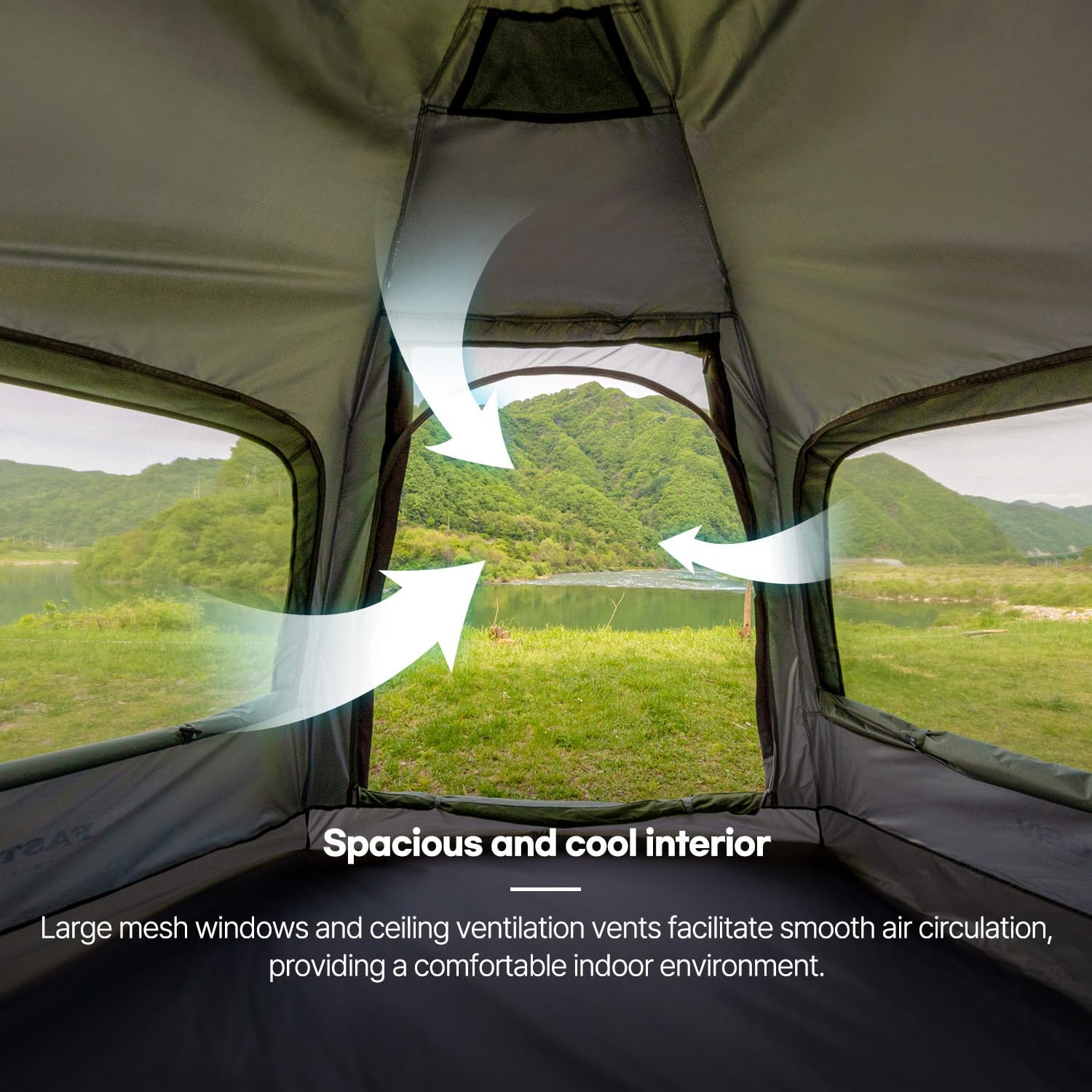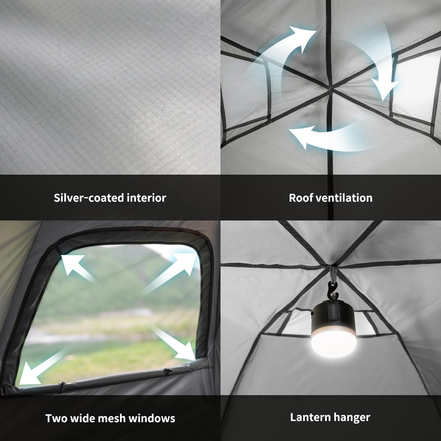 🏆【Dual Breathable Mesh Windows】Two windows open from inside for convenience. Dual-sided mesh entrances not only keep insects out but also enhance ventilation for tents.