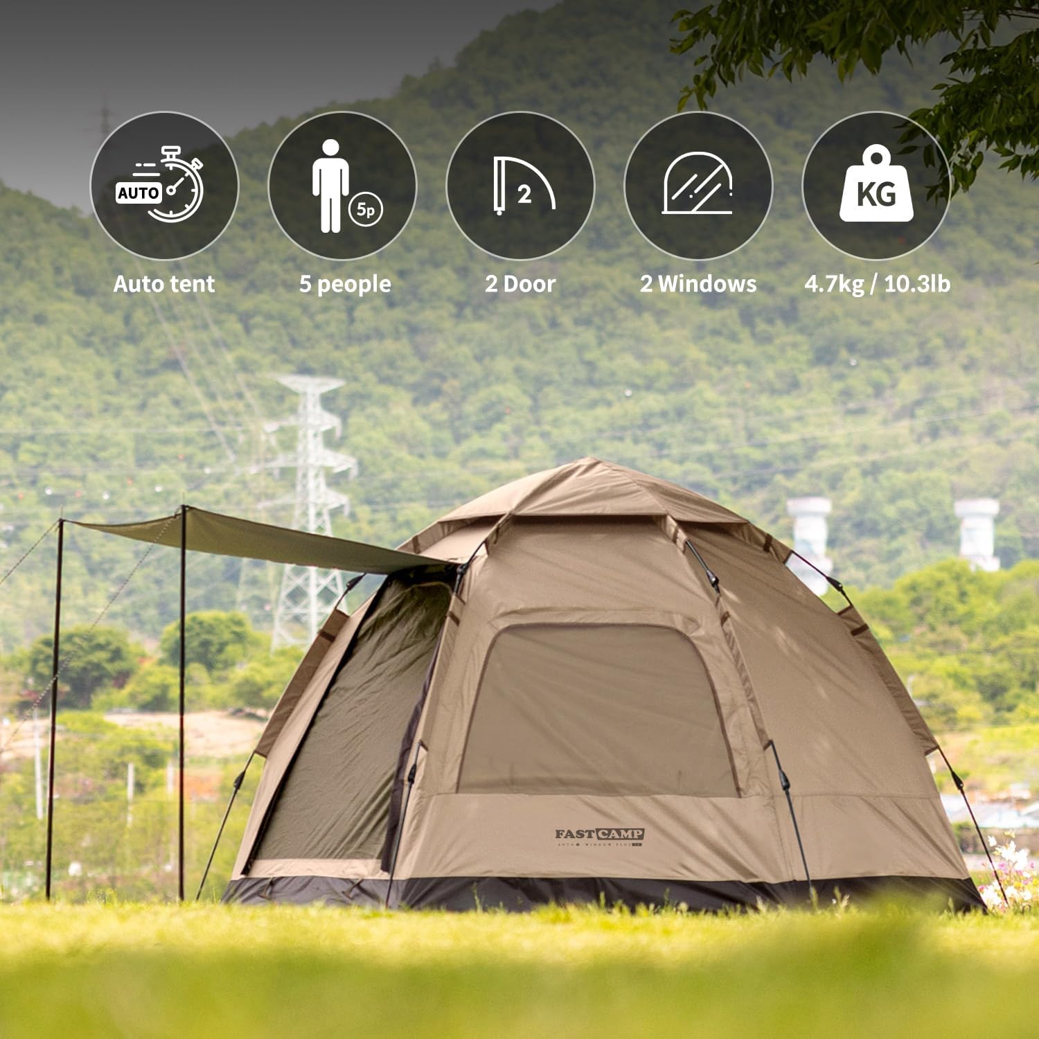 Instant Tent,Pop Up Tent,Camping Tent for 4 Person,2 Mesh Windows & 2 Doors,Hexagonal Design,Easy Set Up Tent with Vestibule & Rainfly