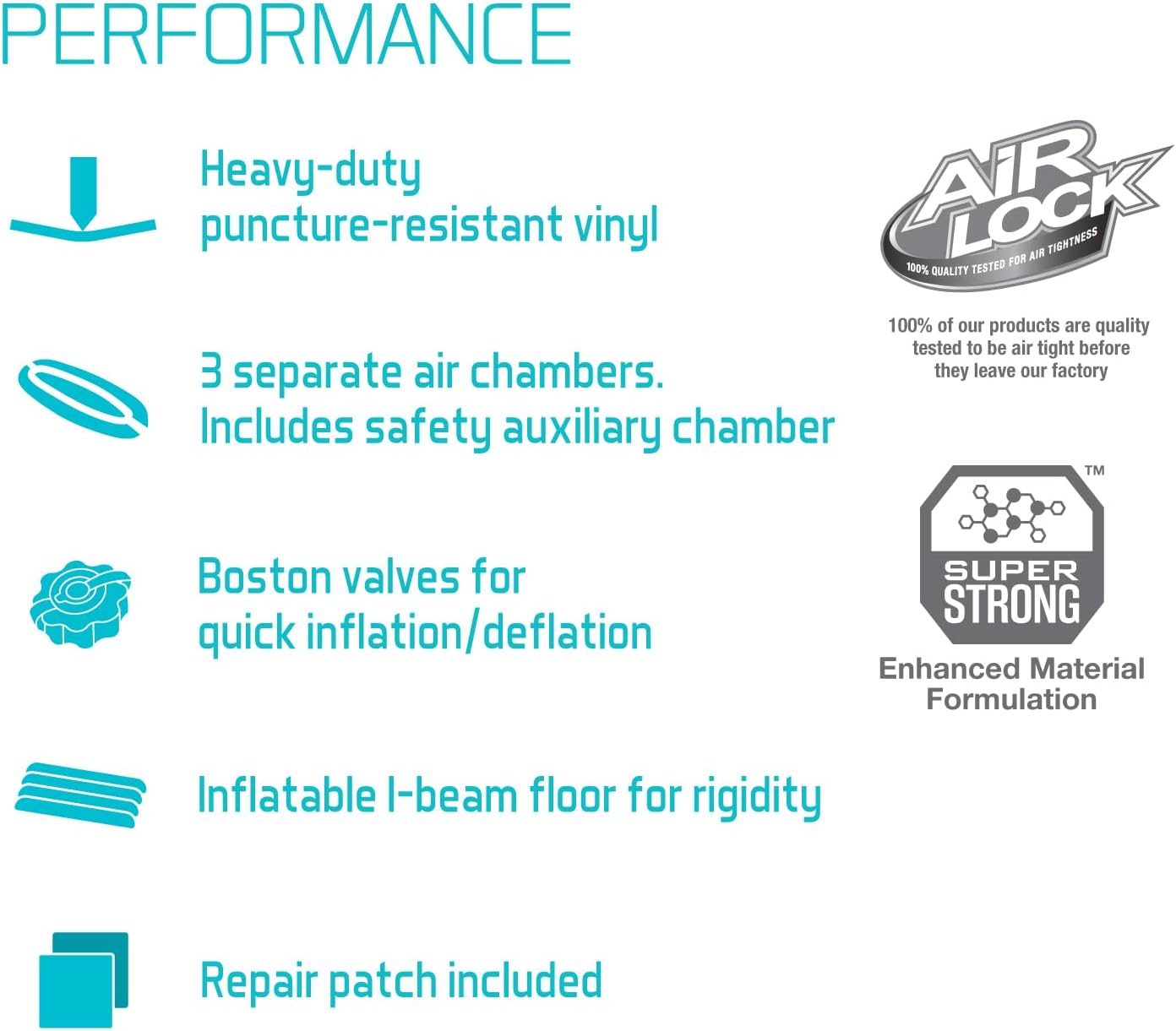 SUPER-STRONG – SuperStrong enhanced molecular formulation PVC provides superior strength and durability, ensuring high impact and abrasion resistance