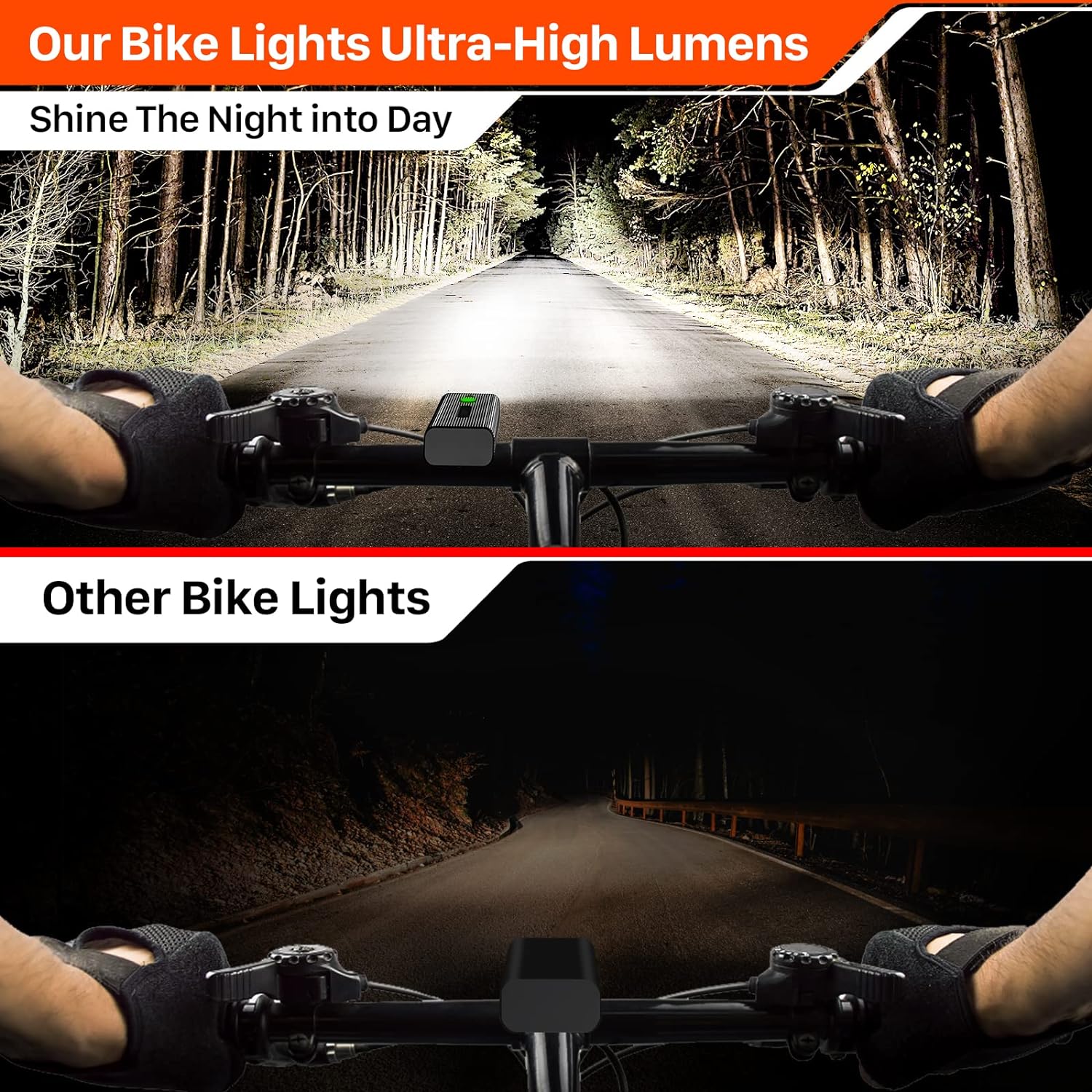 ✨✨【High Brightness】:Our bike lights offer high brightness that will immediately improve your visibility and safety, you will be shocked and amazed at how bright it is! When you ride in the dark, there is a large area of light in the distance and nearby, and the brightness even gives you a clear vision while riding.