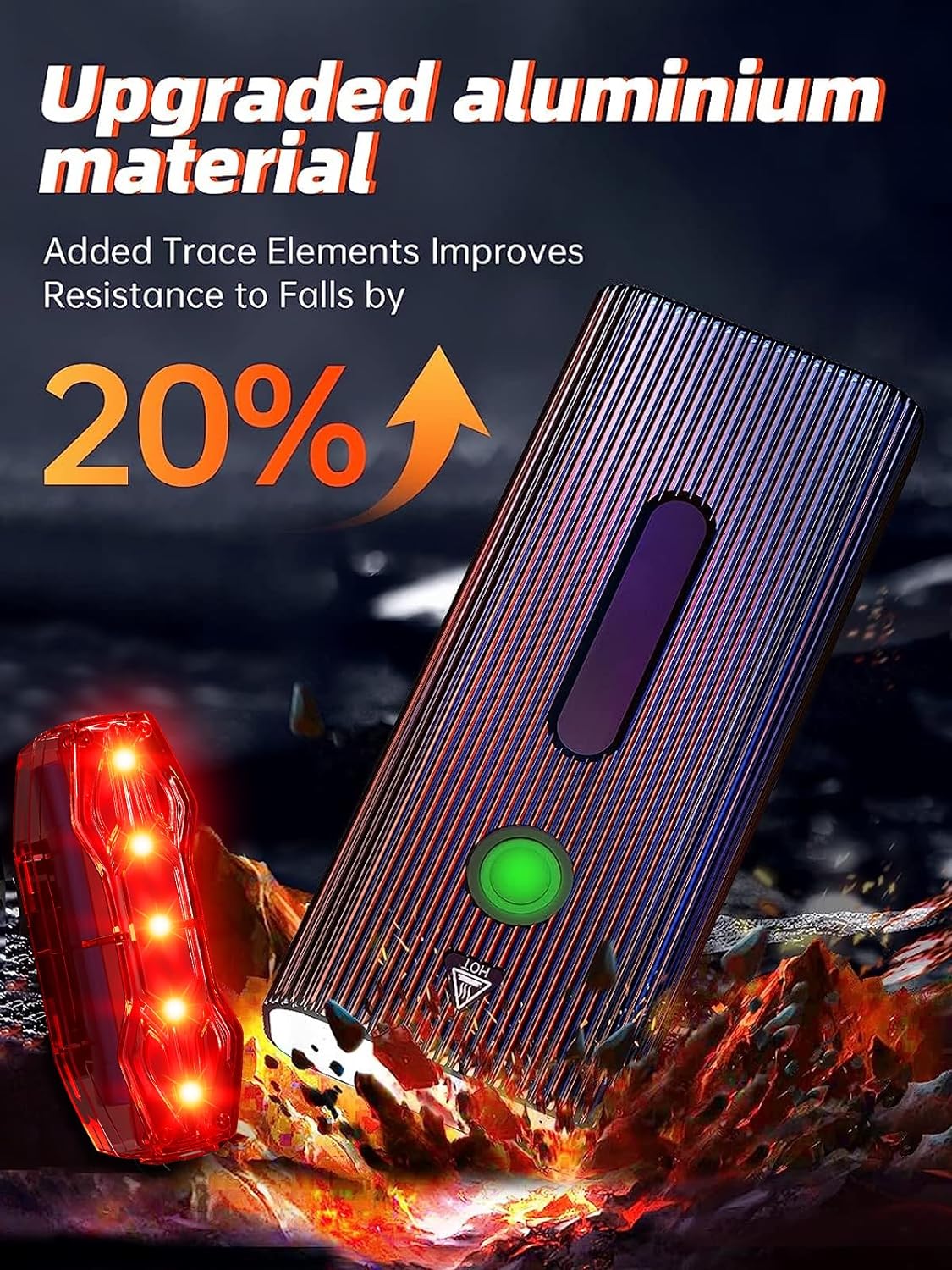 💎💎【Rechargeable Function and Grade Military】:With its battery function,it can be used as a backup power source to charge your phone when you are outside and your phone’s battery is discharged(Type C).In addition,the bike light is made of high quality aluminum alloy, which has excellent impact resistance, heat dissipation and corrosion resistance, which greatly extends the life of the bike light.