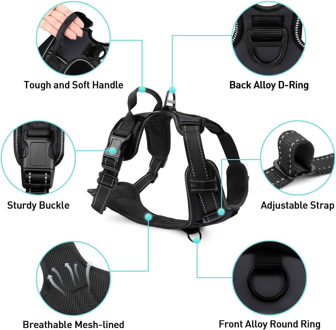 PREMIUM QUALITY – The padded dog vest is made of enhanced high density outer nylon oxford, durable and water-resistant enough. Soft breathable mesh filling makes the inner layer feels comfortable rather than constant pressure and yanks on the dog’s neck bones to protect dog from injury