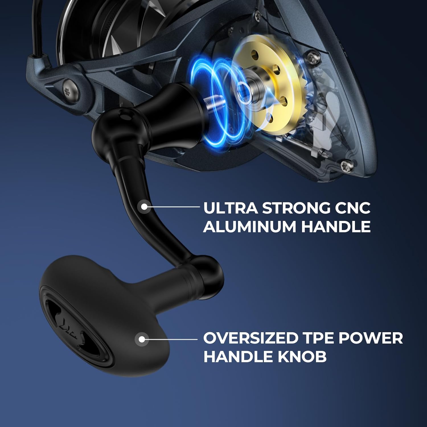 The oversized TPE power handle is ready to handle big fish in challenging conditions while providing exceptional control.