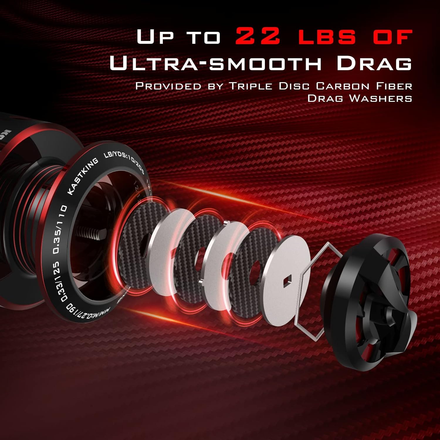 Triple Disc Carbon Drag – The new KastKing Royale Legend Glory spinning reel has a three-layer carbon fiber disc drag system that gives you the smoothest drag possible for using light fishing lines and leaders. With up to 22 lbs of stopping power, you’ll always be in control.