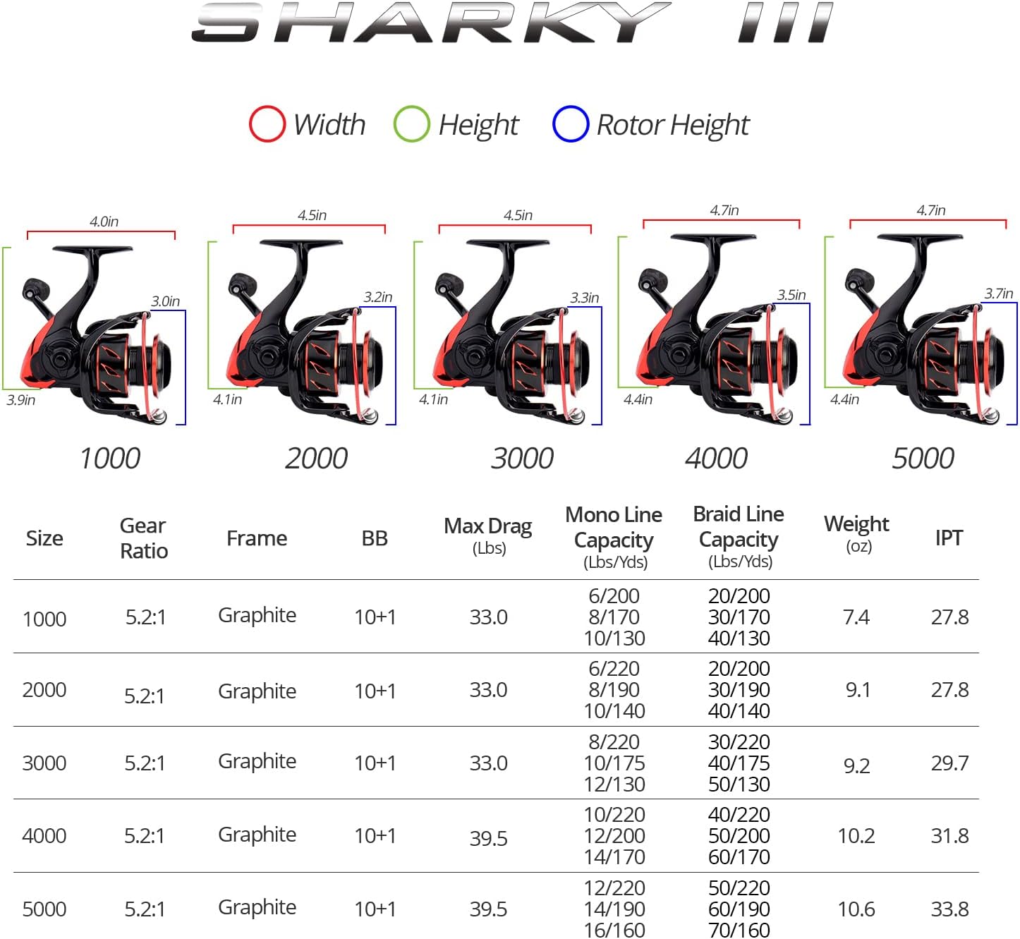 AFFORDABLE INNOVATION – Sharky III spinning reel has more features, including 10 + 1 high quality, saltwater rated double shielded stainless steel ball bearings, instant lock anti-reverse, stainless steel hardware, aluminum handle, and more line capacity.
