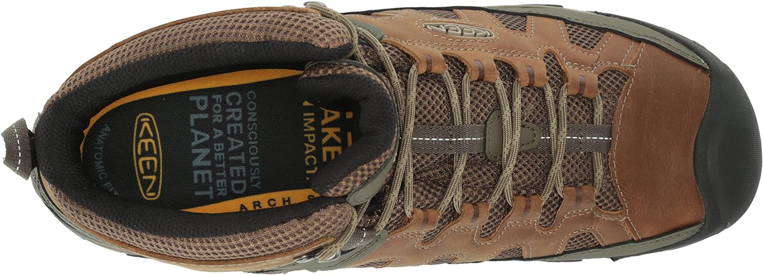 Dig into summer with a highly breathable design. We carried over the fit, stability, and grip of our award-winning Targhee hiking boot and retooled the upper with mesh panels. A best-of-all-worlds boot for staying cool while exploring the warmer spots of the world. Made with durable, water-resistant mesh and featuring a breathable lining, the Men’s Targhee Vent Mid Height Hiking Boot is built off KEEN’s traditional wider footwear form. KEEN products are consciously created using a natural, pesticide-free probiotic-based technology called Eco Anti-Odor for breaking down odor in sweat, PFC-free water repellent (in applicable styles) and leather sourced from Leather Working Group (LWG)-certified tanneries. KEEN makes shoes to make a difference. From the products it makes, to the actions the it takes, KEEN inspires people to live and work monumental every day. As a brand born for life outside, KEEN has a responsibility to protect and conserve the places where all people live, play and work.