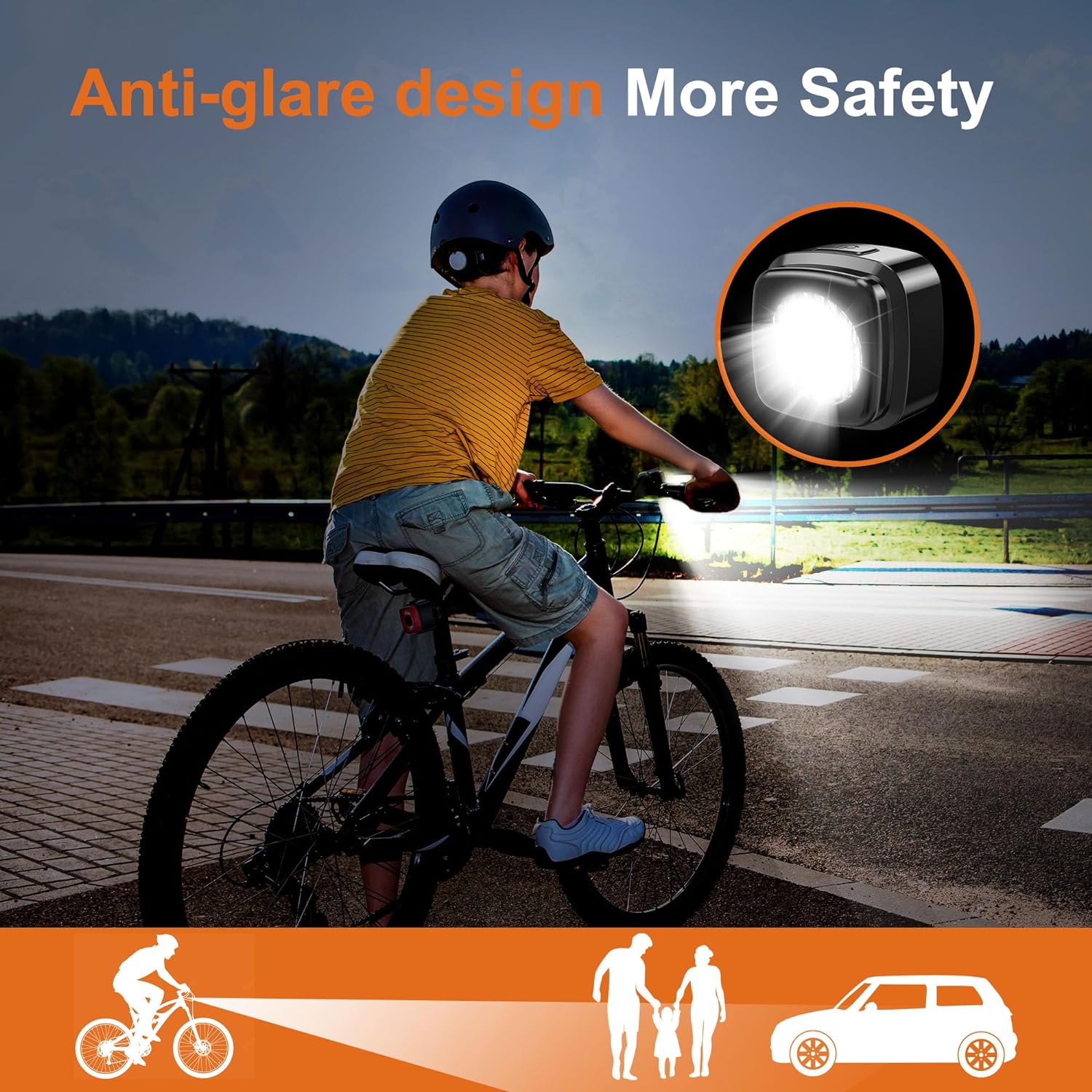 【Multiple Uses】This bike light is suitable for all types of bikes, such as Scooter, MTB mountain bikes, and adult and children’s road bike lights. The bike light has an ultra-bright light and can be used not only for riding on technical trails or bumpy roads but it can also be used for hiking, camping, or as an emergency flashlight during outdoor activities.