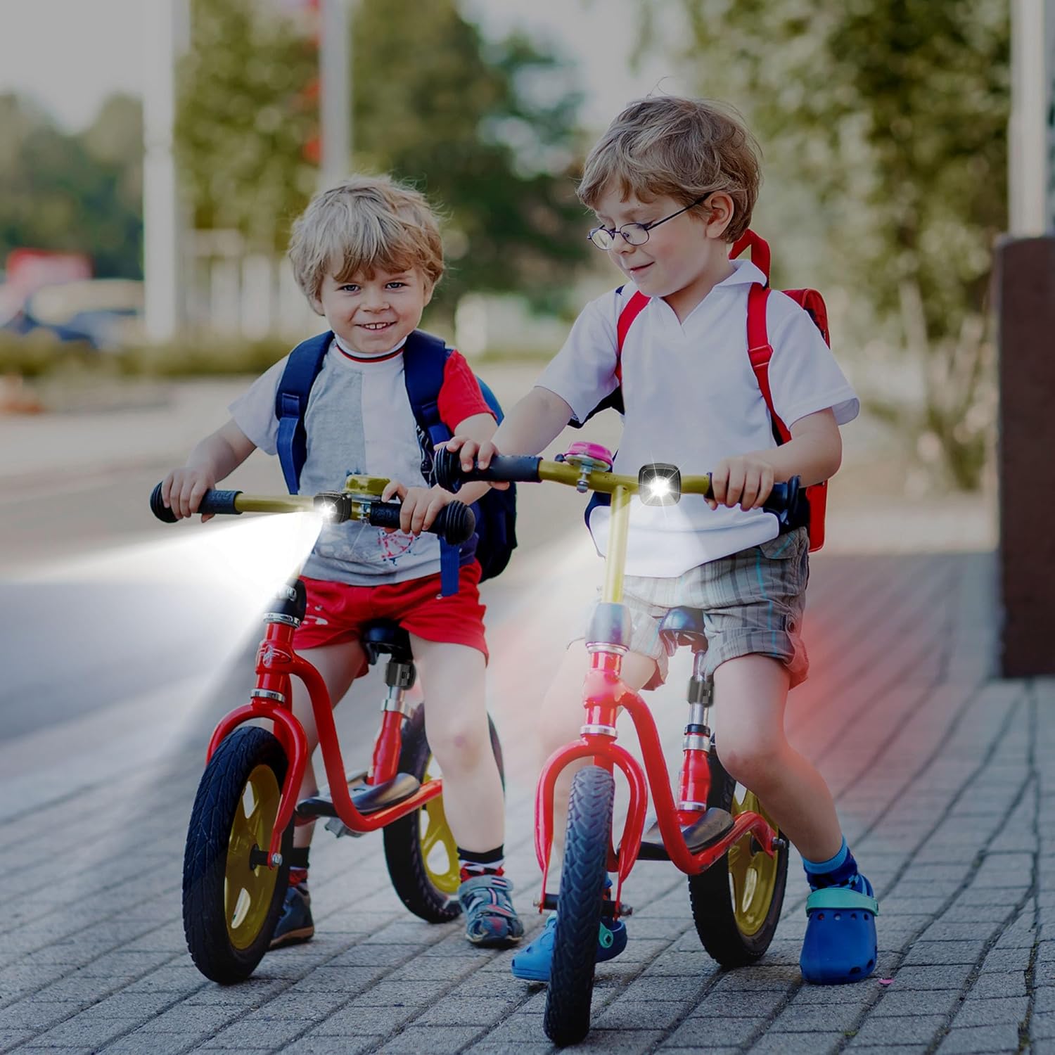 【High Brightness and Multiple Lighting Modes】Each bicycle light is designed with 3 lighting modes, super bright-medium bright-off. When the battery power is too low, the indicator light turns red. The kids bike lights gives directions for your night ride. These ultra-bright bicycle lights will be the perfect Birthday, Easter, Burning Man, or Christmas gifts for kids, children, boys, girls, teenagers, adults of all ages!