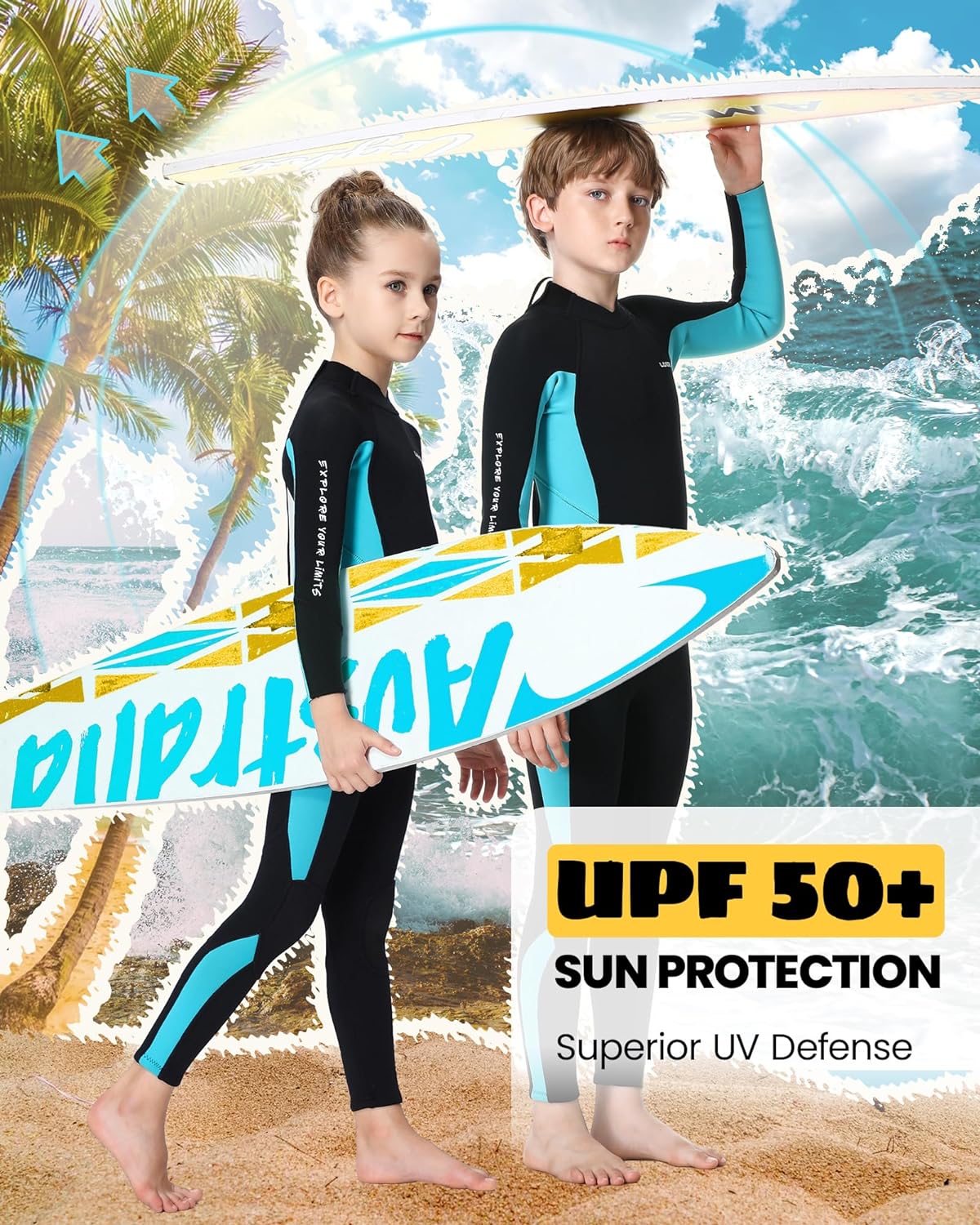【Durable & Easy to Put on/off】With a YKK BACK ZIPPER, favored by top brands for its renowned quality and smooth operation, our surf suit offers hassle-free dressing and undressing compared to the front zipper. We feature a NYLON OUTER FABRIC, enhancing the cuffs’ durability, which allows for RAW EDGE DESIGN. It maximizes the elasticity of CR neoprene, ensuring a flexible for an effortless wearing experience. Easily roll up or down the cuffs to accommodate your child’s growth.