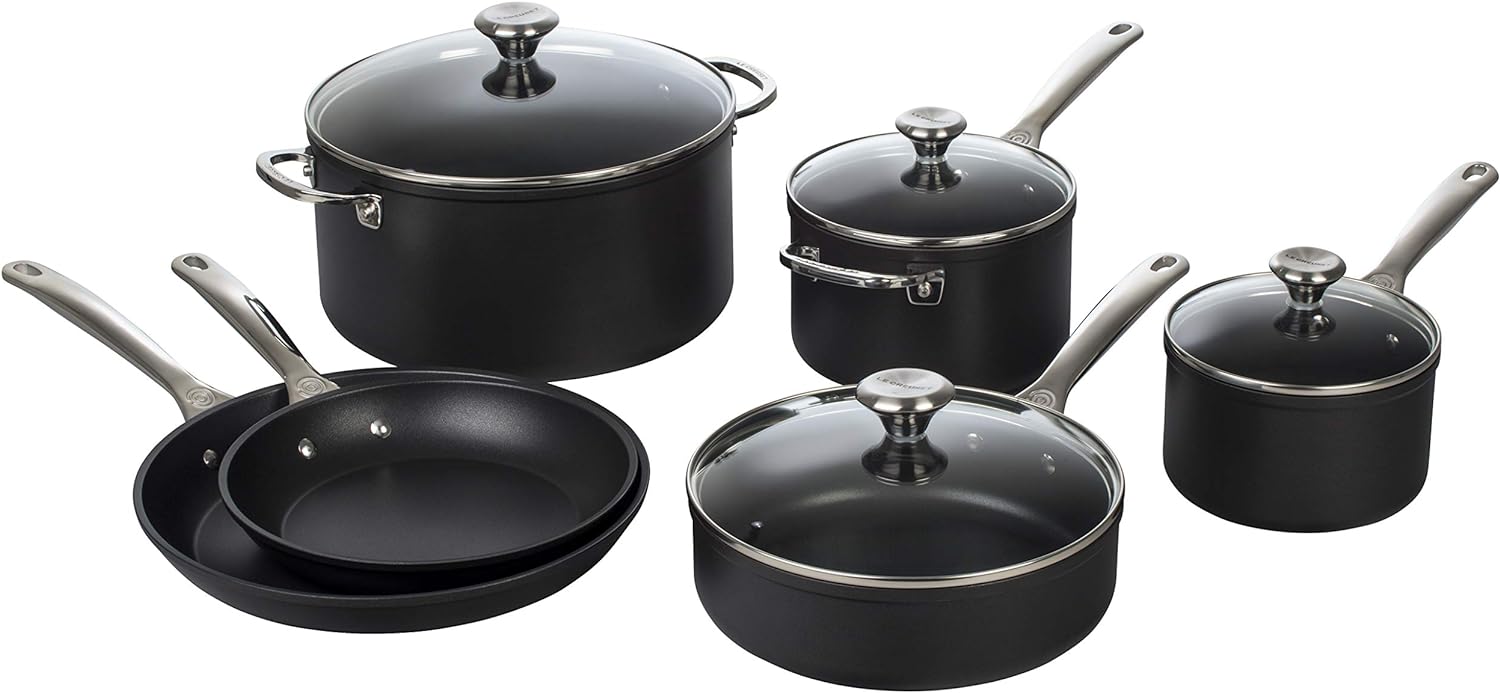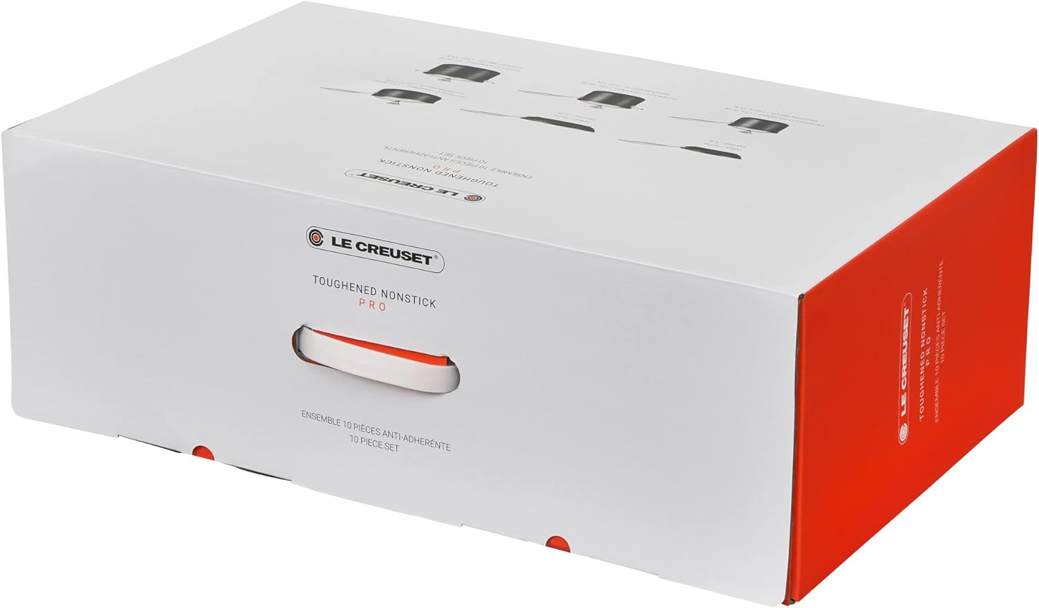 The 10-piece Nonstick cookware set features our best selling pots and pans, and includes the essentials for those starting out or outfitting a new home. Le Creuset’s Toughened Nonstick delivers superior results and everyday ease of use. Each exceptionally versatile pan is crafted to our legendary standards and features a textured triple-reinforced coating that easily wipes clean. Safe for dishwasher, oven and metal utensils, Le Creuset’s nonstick is the choice for mastering flavorful meals from stove to oven to table. Set includes: 8” fry pan, 11” fry pan, 2 qt. saucepan, 3 qt. saucepan, 3 1/2 qt. saute pan and 6 1/3 qt. stockpot.