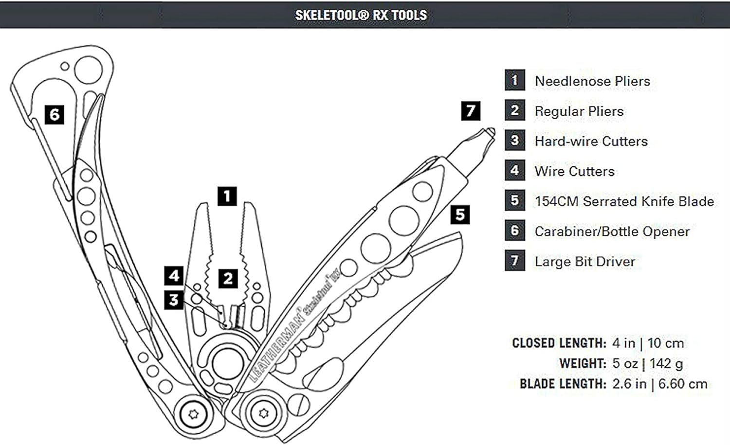 FIT MORE FUNCTIONALITY: Needlenose and regular pliers, hard and regular wire cutters, carabiner/bottle opener, large bit driver and 154CM serrated knife