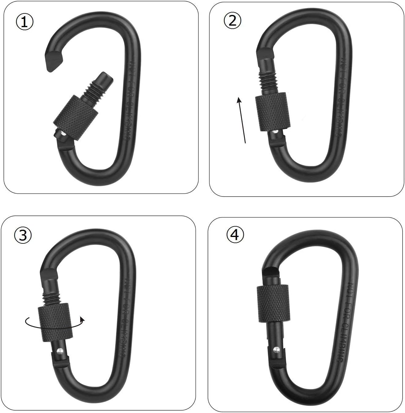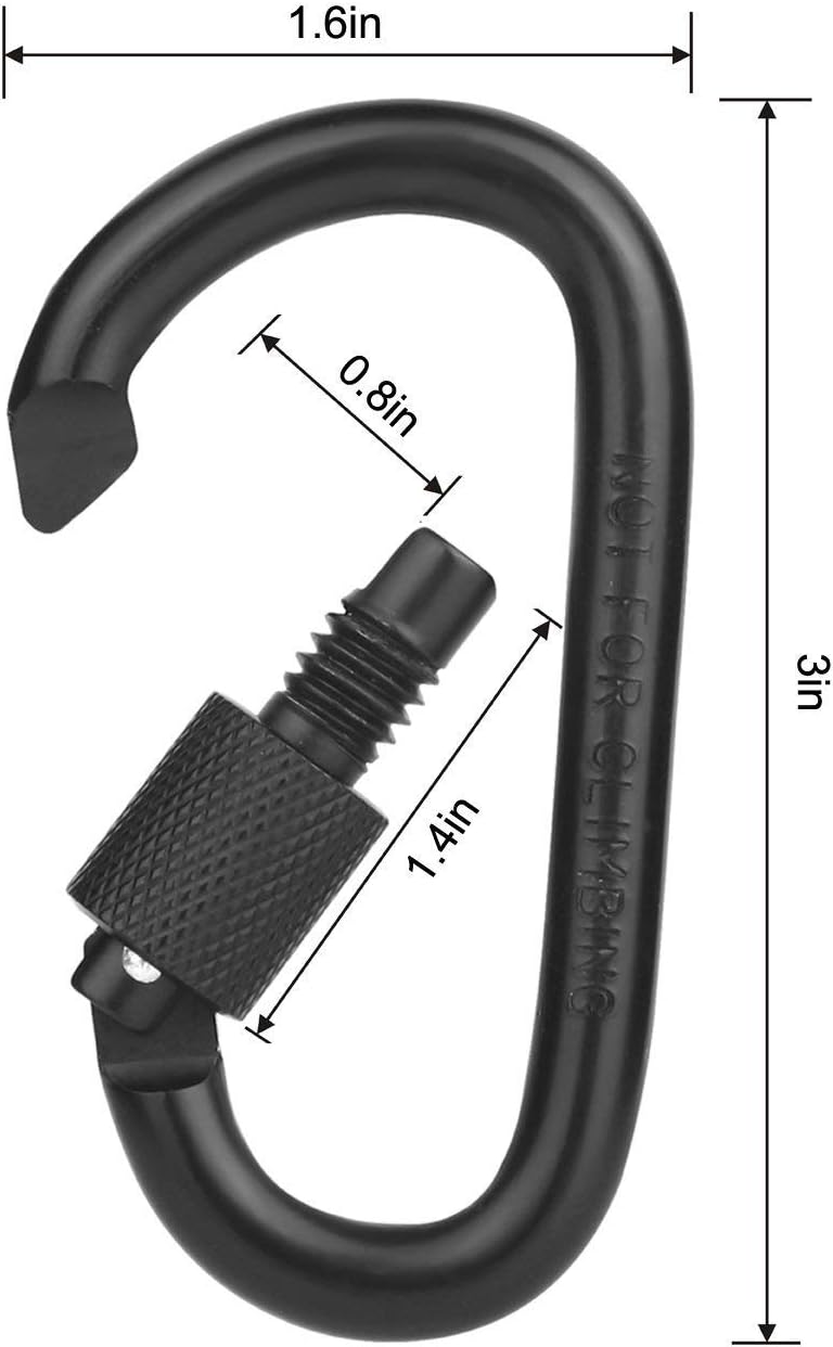 SAFETY DESIGN — Caribeener clips with D shape quick spring loaded gate design, screw can lock the heavy duty carabiner to keep the bag, water bottle, keychains and other things from falling off.