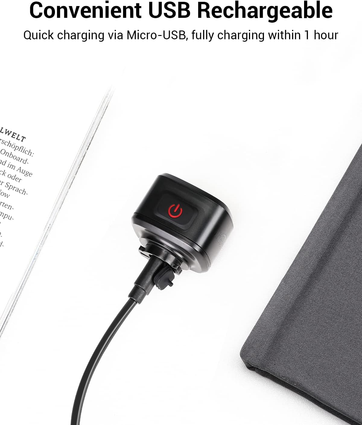 IPX6 WATERPROOF – Reaching IPX6 waterproof level, this bicycle light set works well on rainy or foggy days, allowing you to enjoy your ride. The USB port comes with a waterproof silicone cover that effectively blocks water and extends its life.