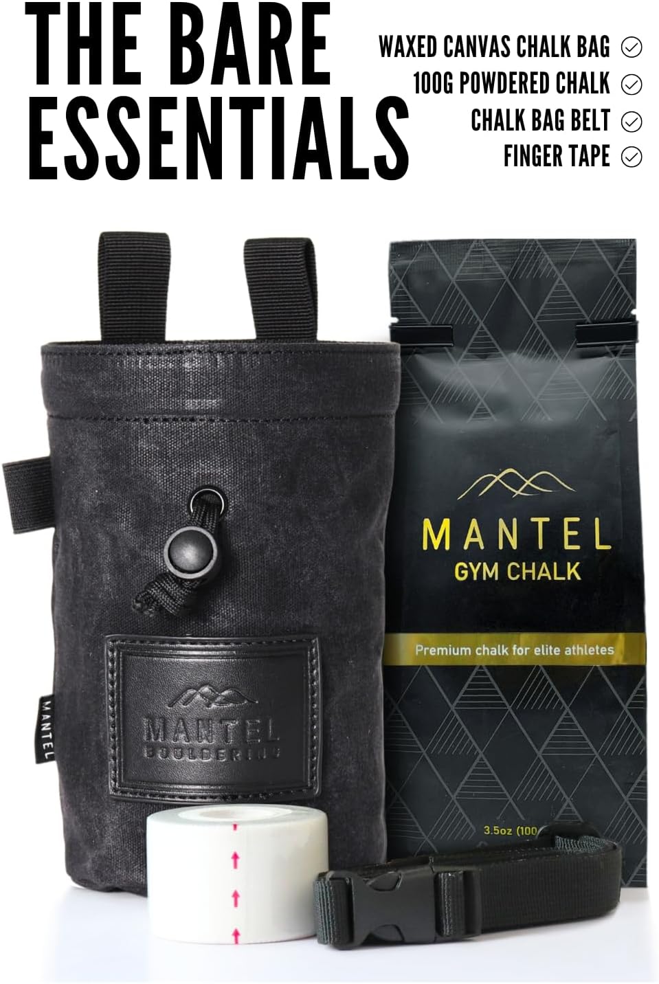 ✅ ESSENTIAL BUNDLE: Whether you’re a seasoned pro or just starting out, our bundle pack has got you covered. With a premium waxed canvas chalk bag, 100g of ultrafine powdered mantel chalk, a sturdy waist belt, and reliable finger tape, you’ll be ready to crush any climb.