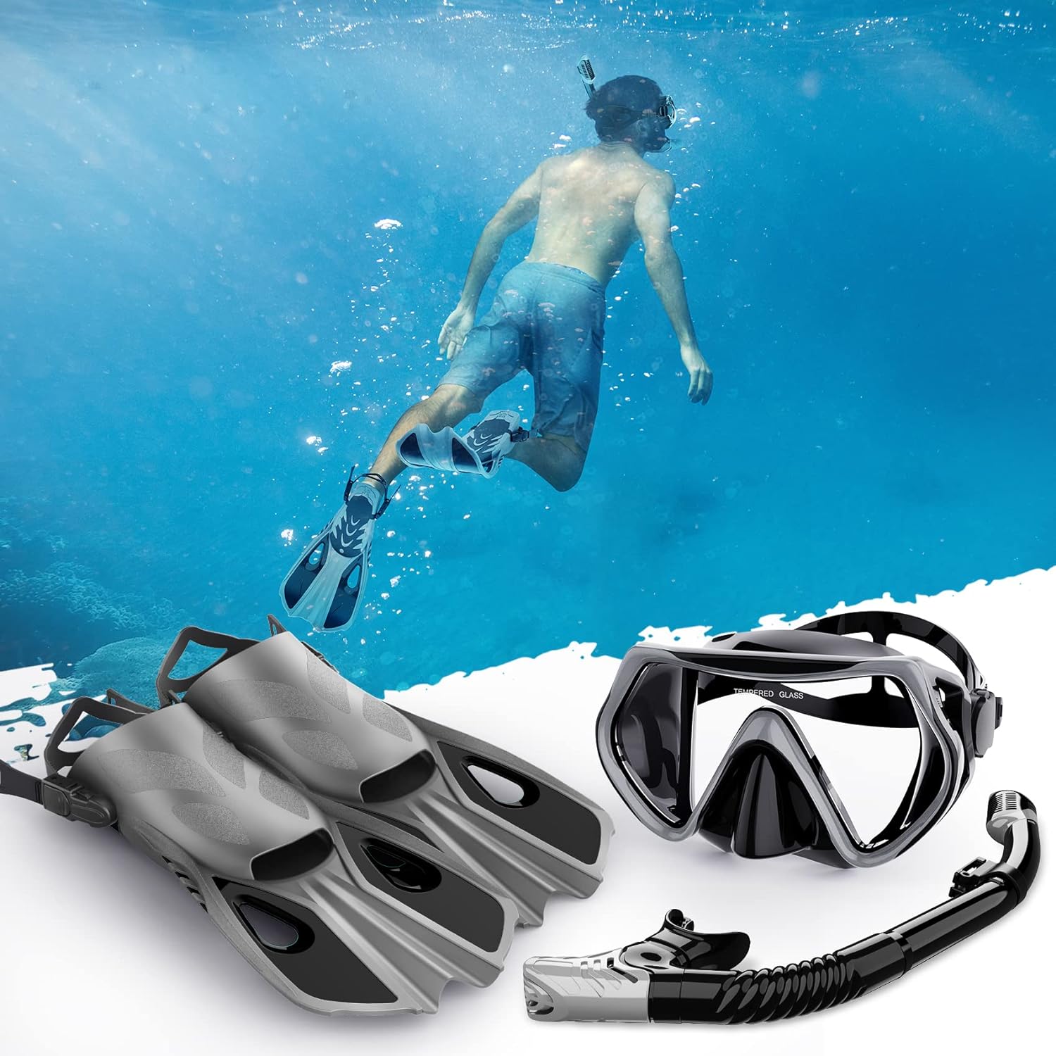 [Get Snorkel Mask, Dry Snorkel, and Fins All at Once] Meet all your needs for swimming, snorkeling, and scuba diving. WONDSY Adult Snorkeling Set is easy to use and comfortable to wear, a good companion for you to start and enjoy your snorkeling journey. This snorkel set comes with a mesh gear bag, you can carry it whether you go.