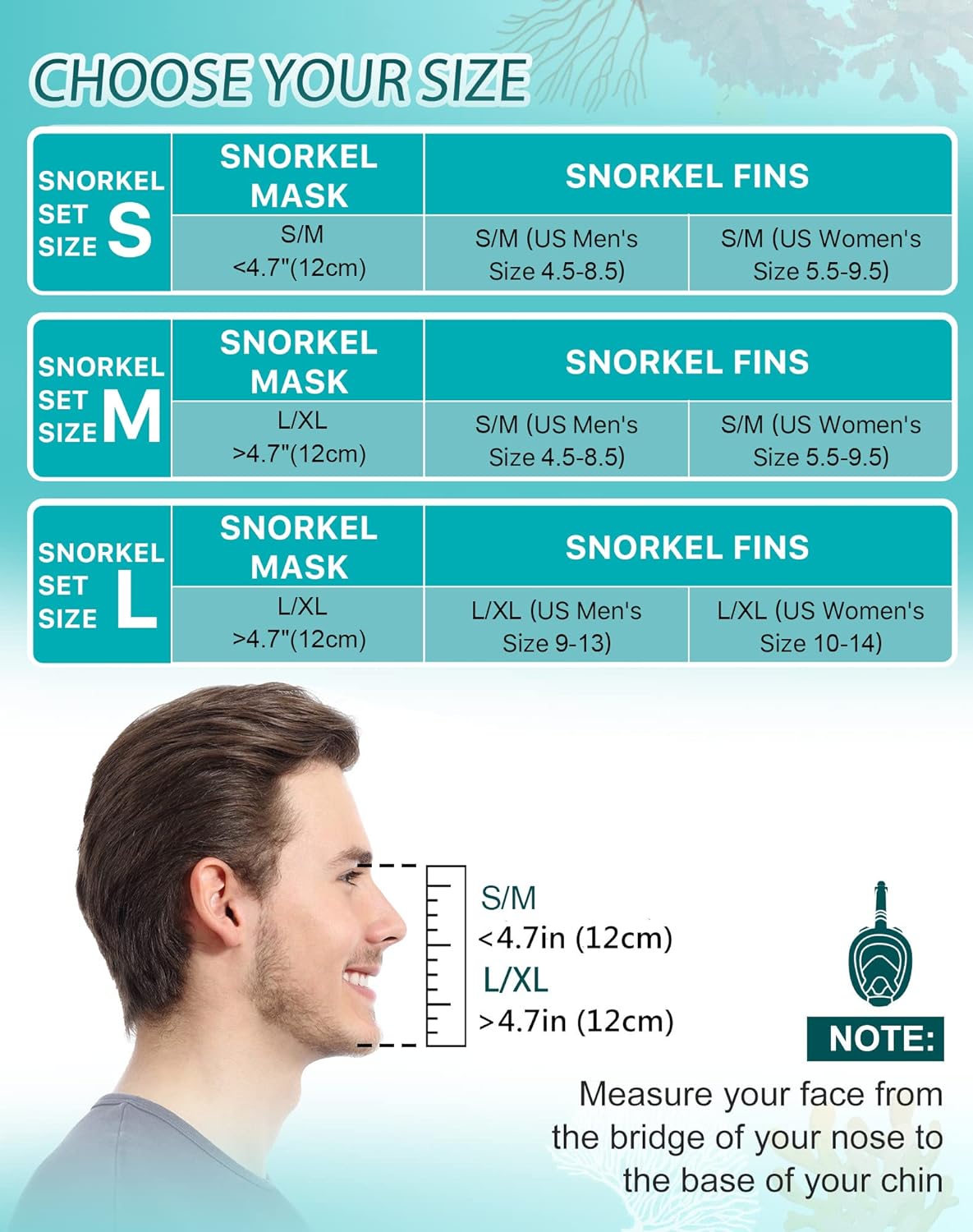 🏊YOUR BEST SNORKEL PARTNER – Thanks to the short fins and foldable snorkel design, our snorkeling gear for adults and youth can be easily packed in carrying bag (included) and great for travel. Whether you’re a beginner or an experienced snorkeling enthusiasts, this snorkel set will take your next snorkeling trip to better level. We offer a 30-day return guarantee and are always available to solve any issues within 24 hours. Pls check the size chart before picking yours.