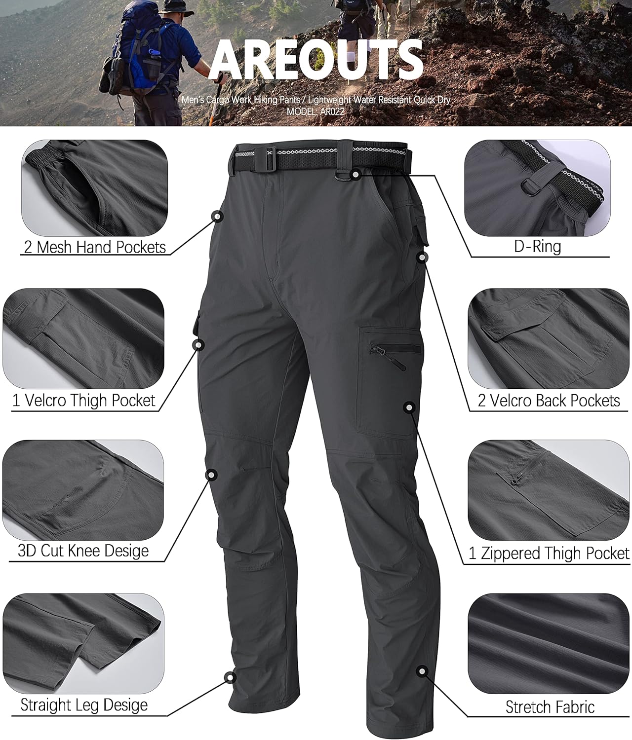 Men’s Cargo Work Hiking Pants Lightweight Water Resistant Quick Dry Fishing Travel Camping Outdoor Breathable Multi Pockets