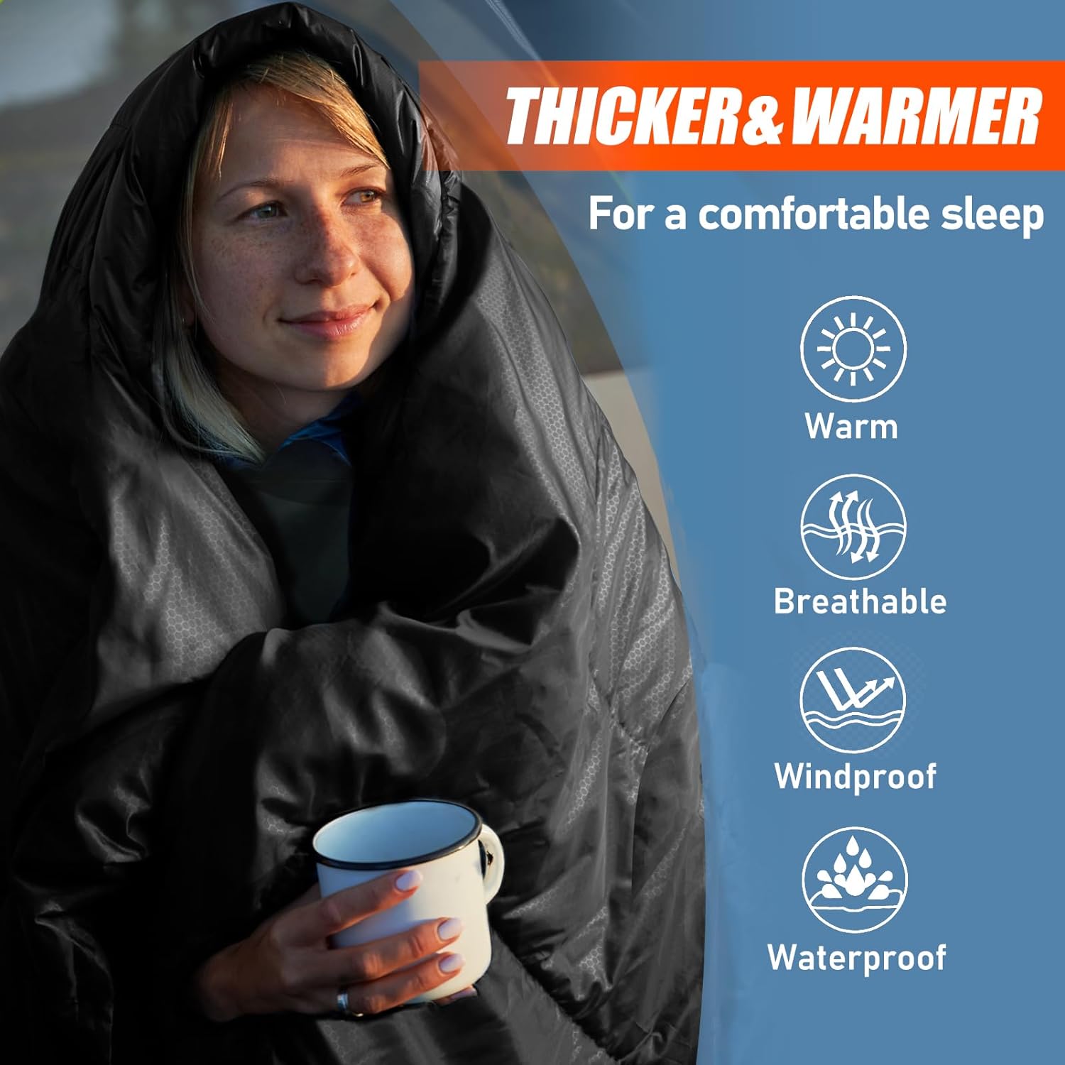 WARM & COOL WEATHER SLEEPING BAG : Exceeding the thickness of most adult sleeping bags on the market, the filling reaches 3.6lbs, which stays warm in temperatures as low as 32°F. The warm sleeping bag also has a drawstring hood that keeps the warm air in and the cold air out and away from your head and neck.