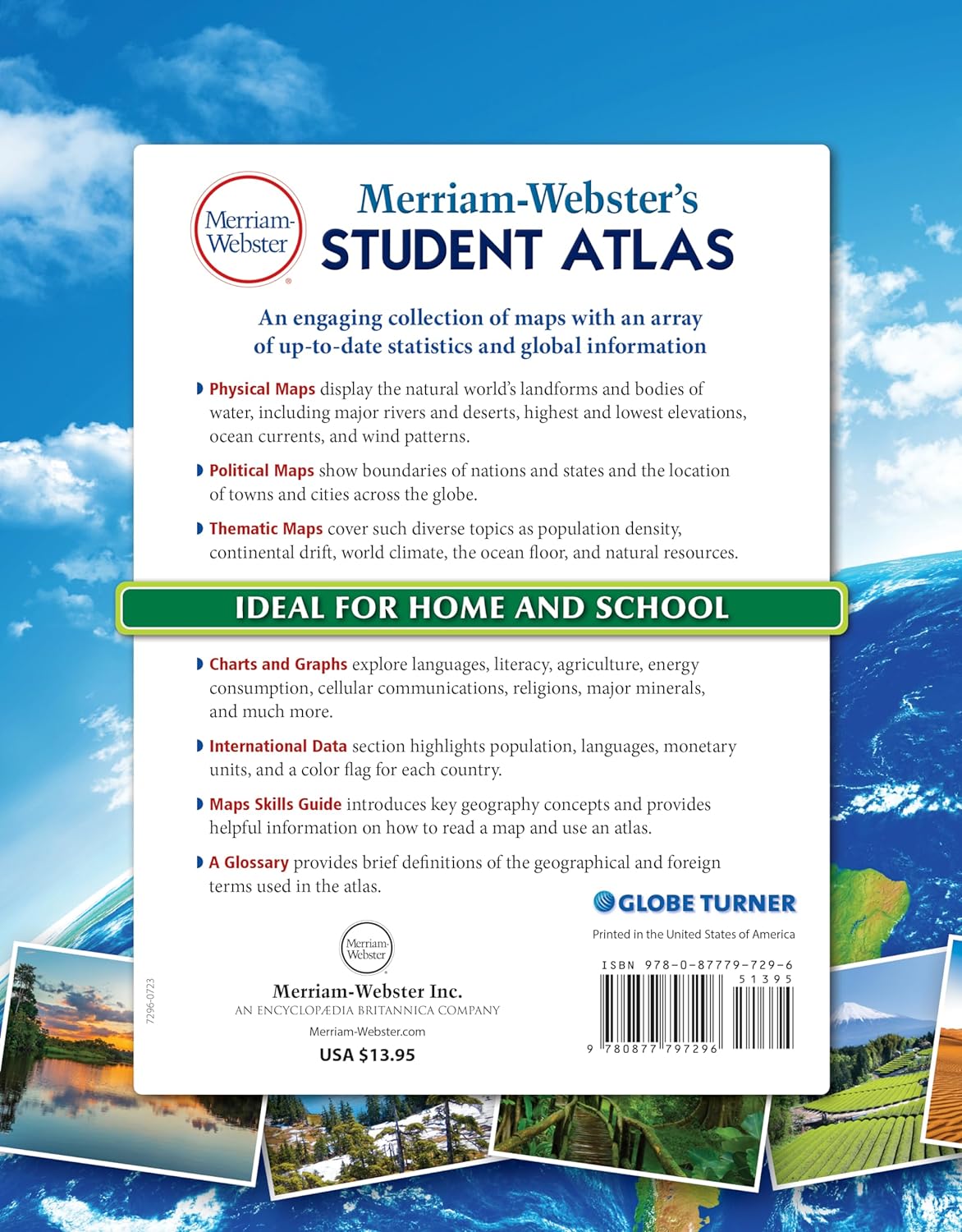 The latest edition of Merriam-Webster’s Student Atlas has been updated to reflect recent global events and features abundant full-color physical, political, and thematic maps.