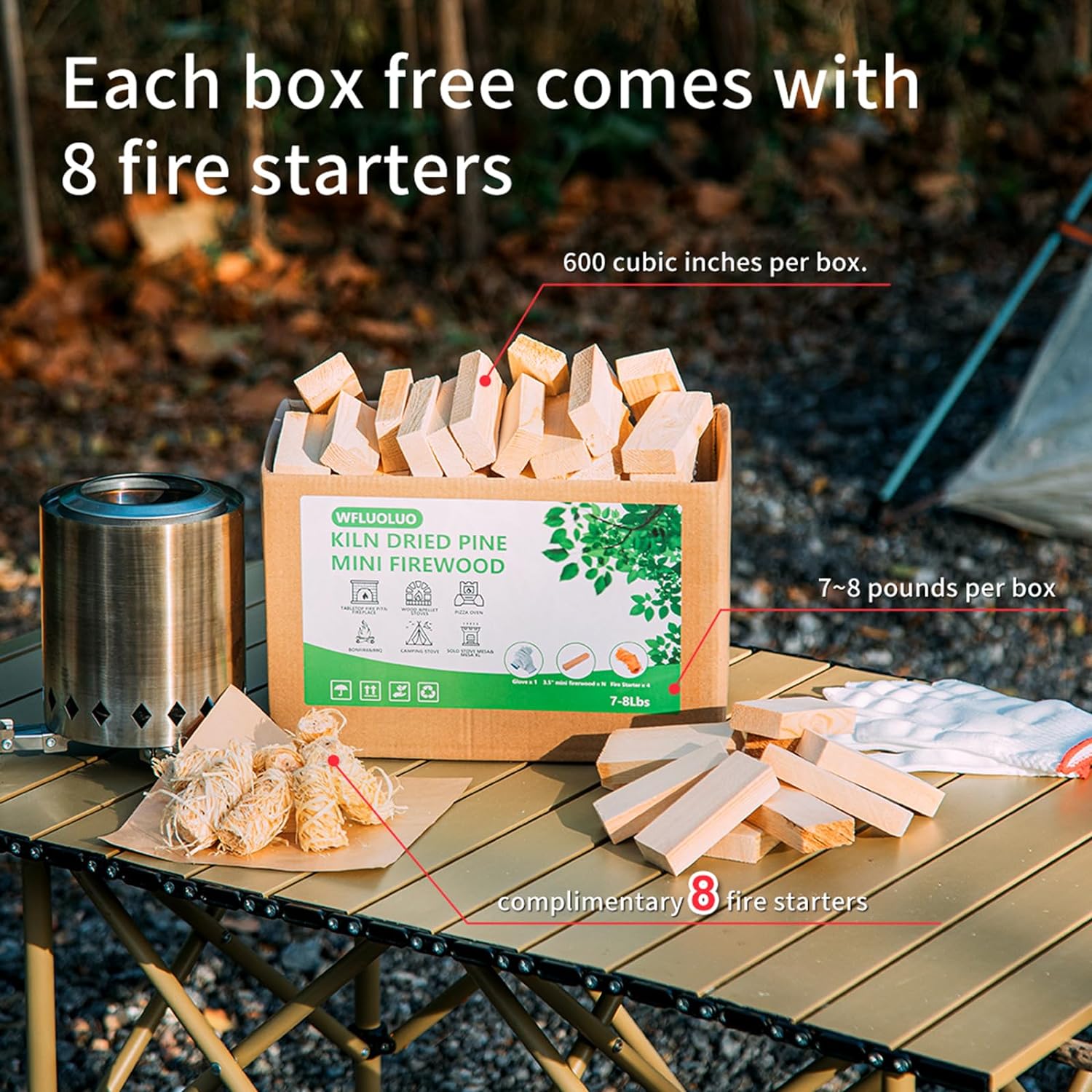 Mini Firewood with 8PCS Fire Starters 3.5” Lengths Pine Kiln Dried Firewood Great Solo Stove Accessories Tool Prefect for Solo Stove Mesa, Tabletop Fire Pit, Solo Stove Mesa Sticks Wood