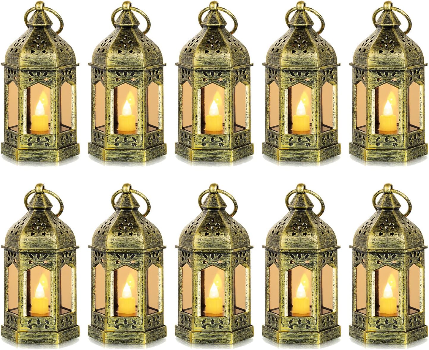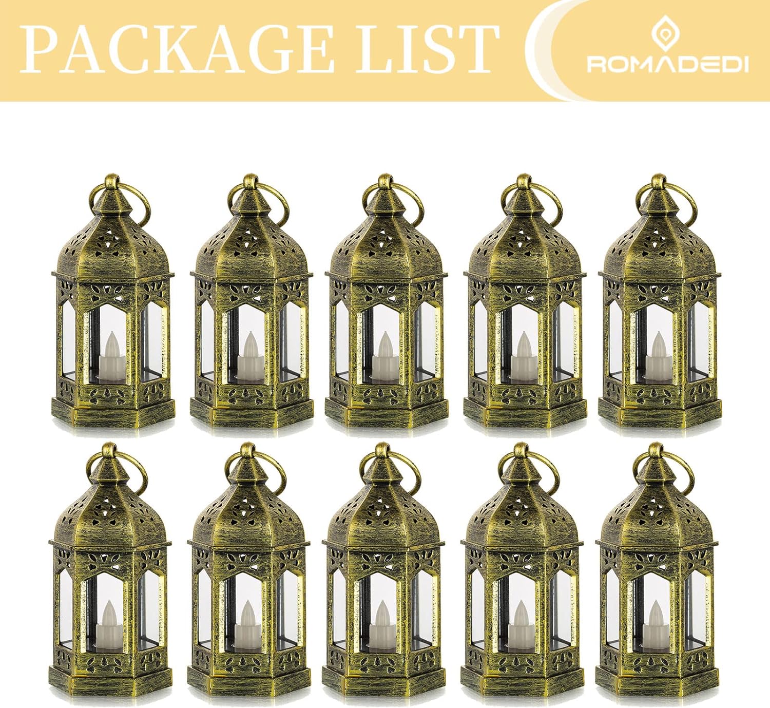 Mini Size: Set of 10 small tealight candle lanterns with cute dimension: 6″ height and 2.5″ in diameter, ideal for home indoor decor. Romadedi mini lanterns are made of premium ABS plastic and glass, reliable enough as lanterns for wedding centerpiece table decorations.