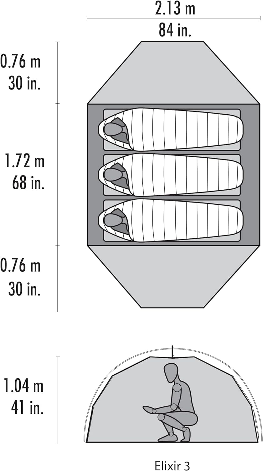 With all the features you expect from MSR, the freestanding elixir 3 tent offers campers and backpackers an extremely livable backpacking tent at a great value. The tent design provides plenty of headroom and space for three full-size adults and their Mats, two large doors for easy entry, and new larger vestibules with 35% more storage space. Balancing breathable mesh fabric with solid canopy fabric, the 3-season elixir 3 tent provides ventilation, warmth and privacy, while the included footprint offers multiple setup options, including a freestanding fast & light pitch with rainfly.
