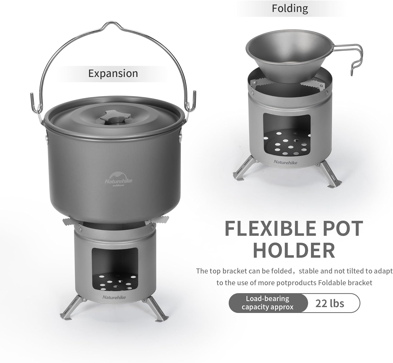 Naturehike 0.44 LBS Ultralight Titanium Camping Wood Burning Stove, Portable Folding Backpacking Wood Stove with Carry Bag