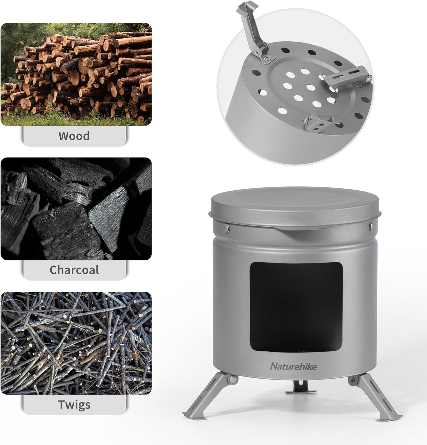 [Compact & Portable] Naturehike wood stove can be folded into a small carry bag with a compact size of Φ5.5″ x 5.9″.