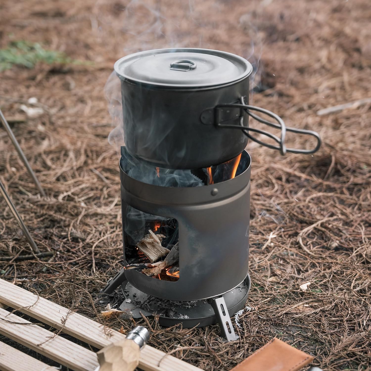 [Titanium Material] Our camping wood burning stove is made of titanium which is durable and ultralight. Weighs only 7 oz(0.44 lbs).