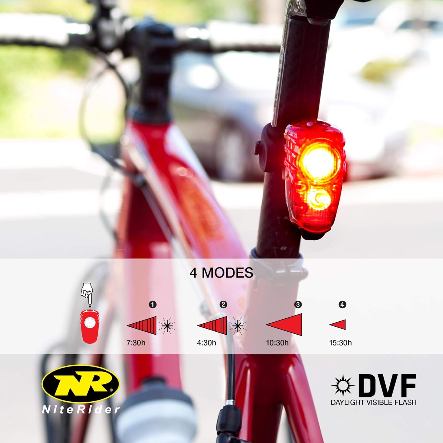 DAYLIGHT VISIBLE FLASH FOR INCREASED RIDER SAFETY with a long a 7. 5 hour run time for those extended rides. Riding with a bright tail light in the daylight is every bit as important as at night.
