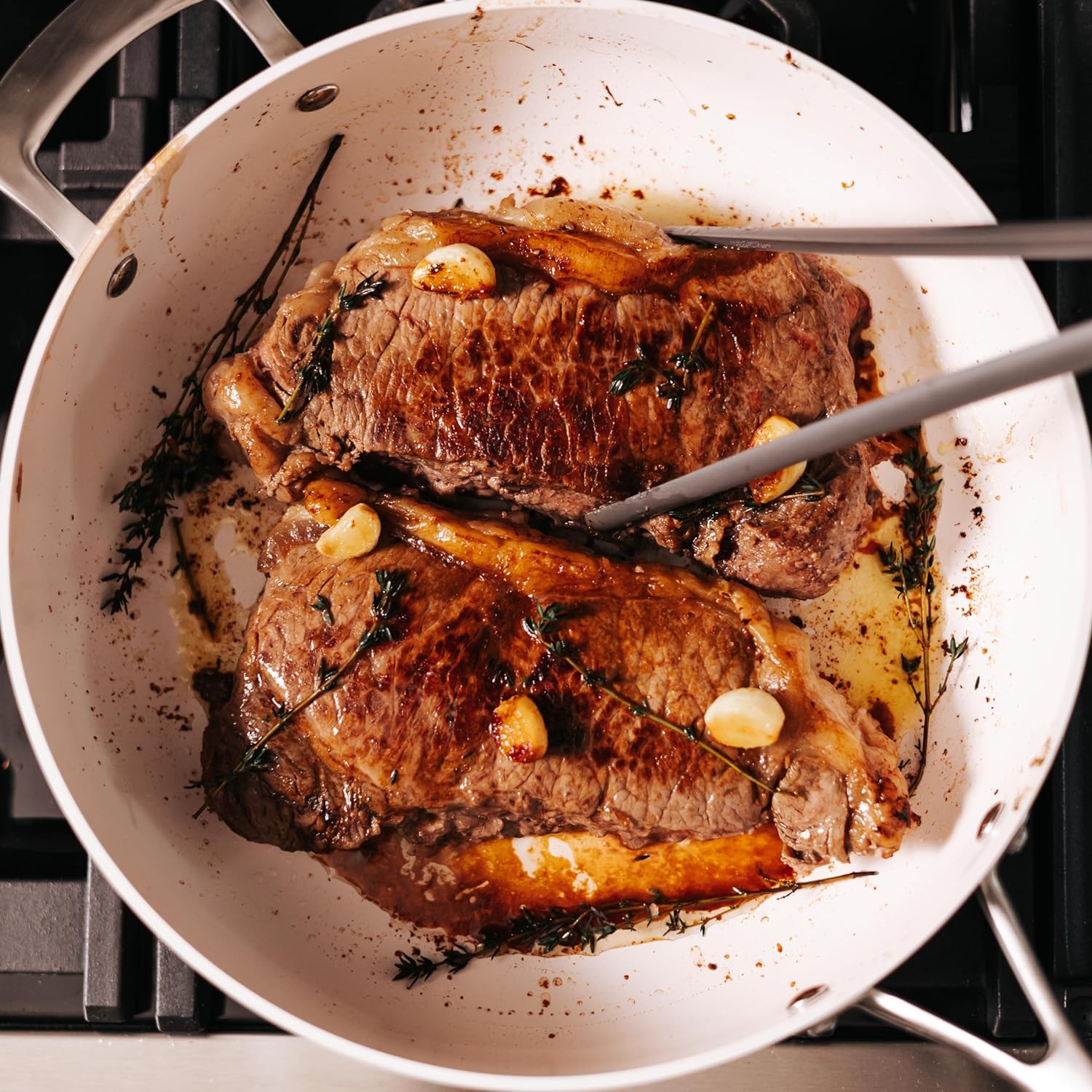 Multifunctional: Crafted to suit any kitchen and cooktop, these ceramic pots and pans are versatile tools that can be used effectively on induction, gas, and electric stovetops. The adaptability extends to oven use, as they are safe up to 550ºF, making them great for baking and roasting.