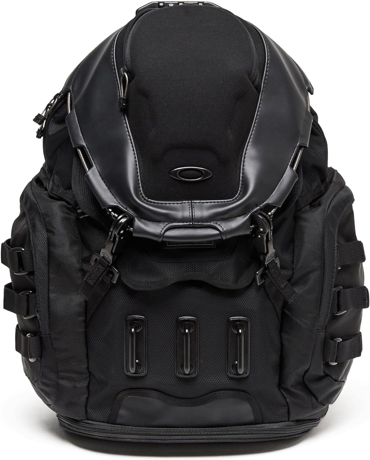 Outfitted with serious hardware and versatile storage options, the Kitchen Sink Backpack is a complete package with heavy–duty appeal. Whether taking a day trip or extended excursion, specialized pockets inside and out organize items while abrasion–resistant fabric keeps them safe, including shoes and most 17″ laptops. A padded back and adjustable mesh–lined shoulder straps keep you comfortable and cool when hauling over long distances. Equipped with a hard media–player compartment and reinforced clip and zip closures, the Kitchen Sink Backpack blends toughness, style and diverse function ideal for the unpredictable day. Bottom shoe compartment provides spacious storage.