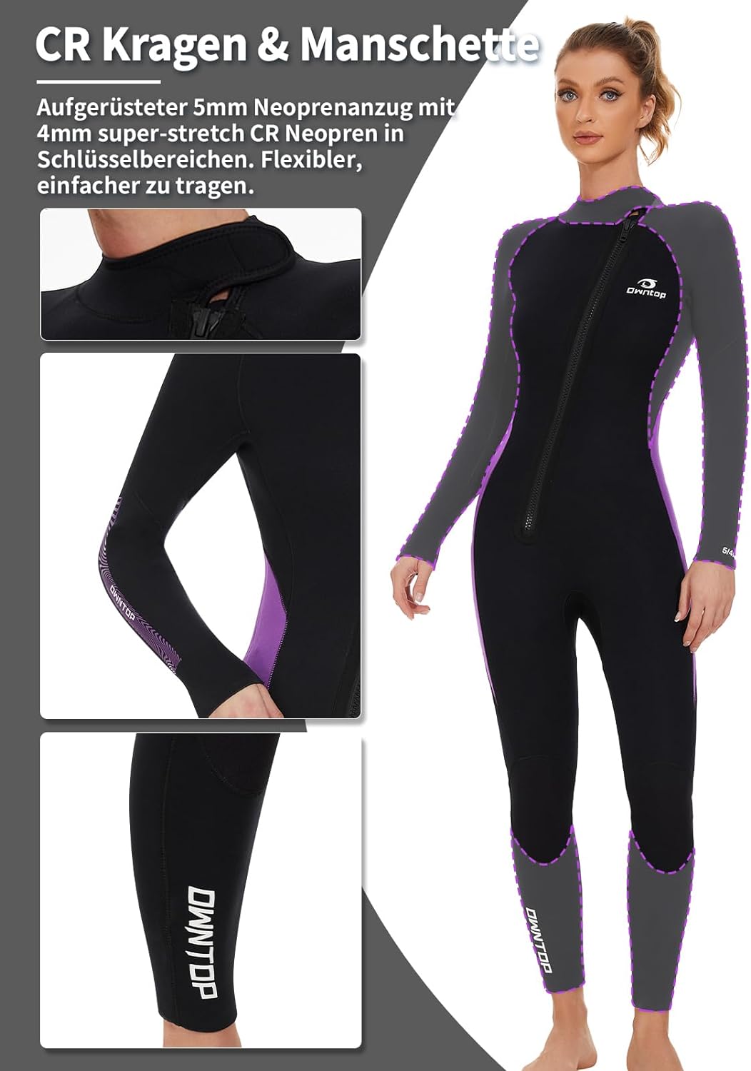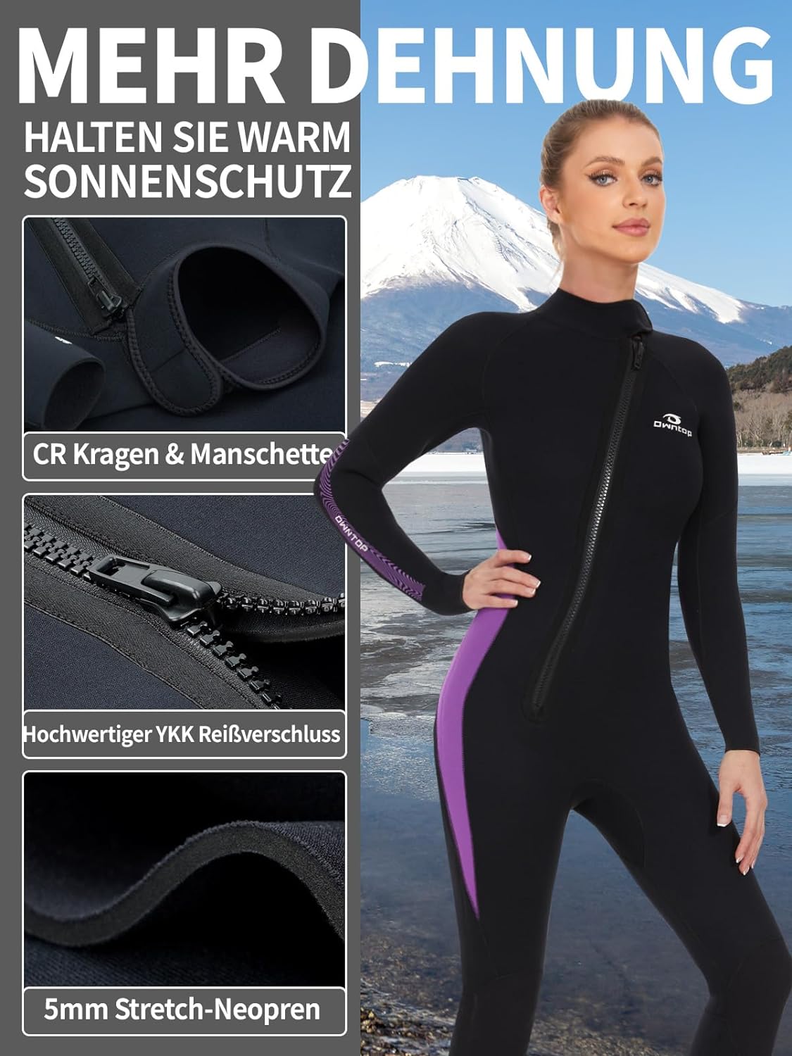 π[Premium 5mm Neoprene Wetsuits] Experience full-length warmth with Owntop’s 5mm Wetsuits. Ideal for cold water sports like surfing and snorkeling, they provide unrestricted motion through the 5mm neoprene body and 4mm CR neoprene cuffs