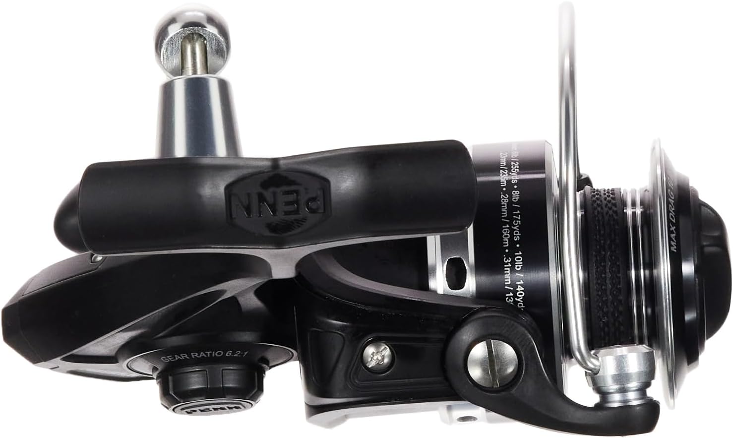 SMOOTH, EFFICIENT GEARS: Recovers at the rate of 37″ | 94cm with every turn of the crank. Gear ratio of 6.2:1. Mono Capacity yd/lb: 270/8 220/10 165/12. Braid Capacity 360/15 260/20 185/30.