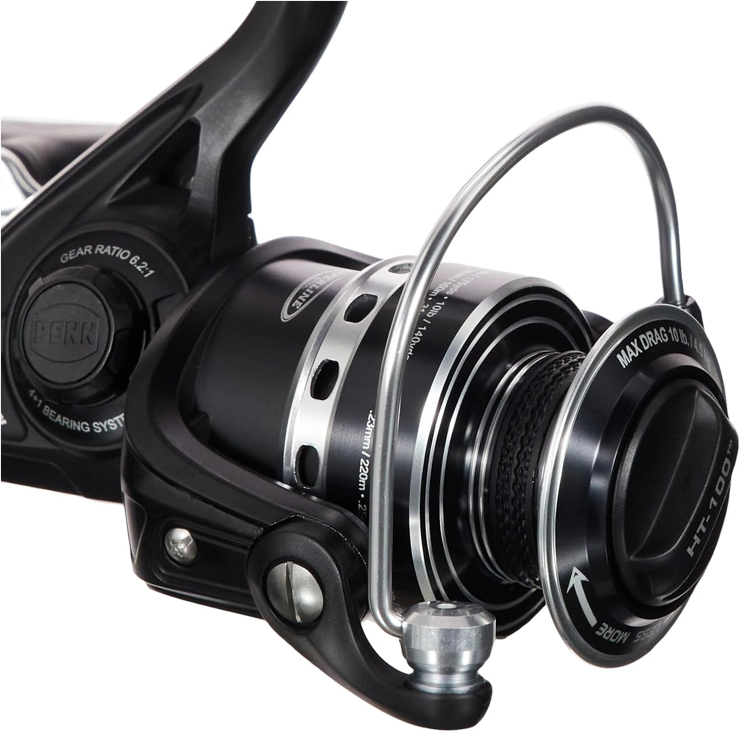HT-100 FRONT DRAG SYSTEM: Built with carbon fiber drag washers for a max drag of 15lb | 6.8kg, this system will exhaust the fish without wearing you down.