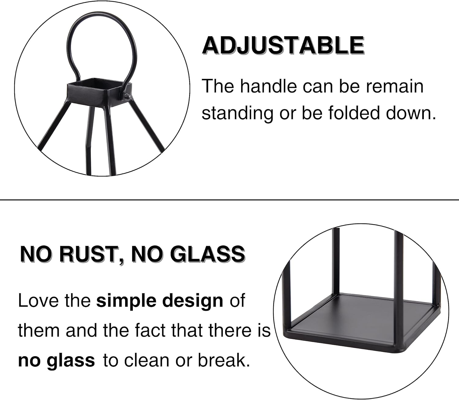 【Modern Farmhouse Lanterns for All Decor Styles】 The Black Metal Lantern features a simple yet stylish design. You can hang them on the wall by the hanging ring, also can be used as a captivating centerpiece on your dining table, whether it’s your front porch, front door, outdoor, indoor, dining table, garden, patio or fireplace mantle. It seamlessly complements any decor style for any occasion!