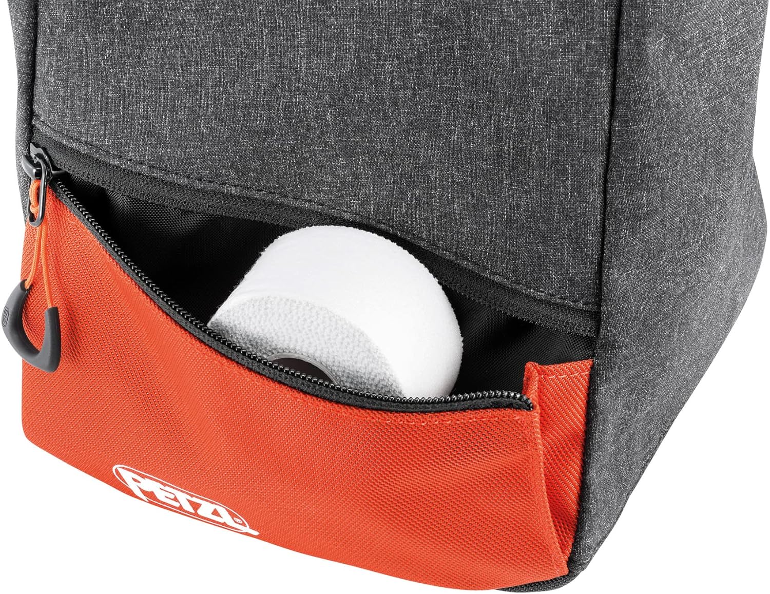 SAKAB is a bouldering chalk bag that is placed on the ground. Its semi-rigid construction provides excellent stability, and its opening is large enough for both hands to access the chalk. The magnetic roll-top closure keeps the chalk securely inside the chalk pot. It has two handles, to facilitate transport and to hang it at hand height. It is practical, with a brush holder and two zippered pockets for separating stored items. PETZL POWER CRUNCH chunky chalk improves grip when climbing. Available in two different bag sizes to meet the climber’s needs.
